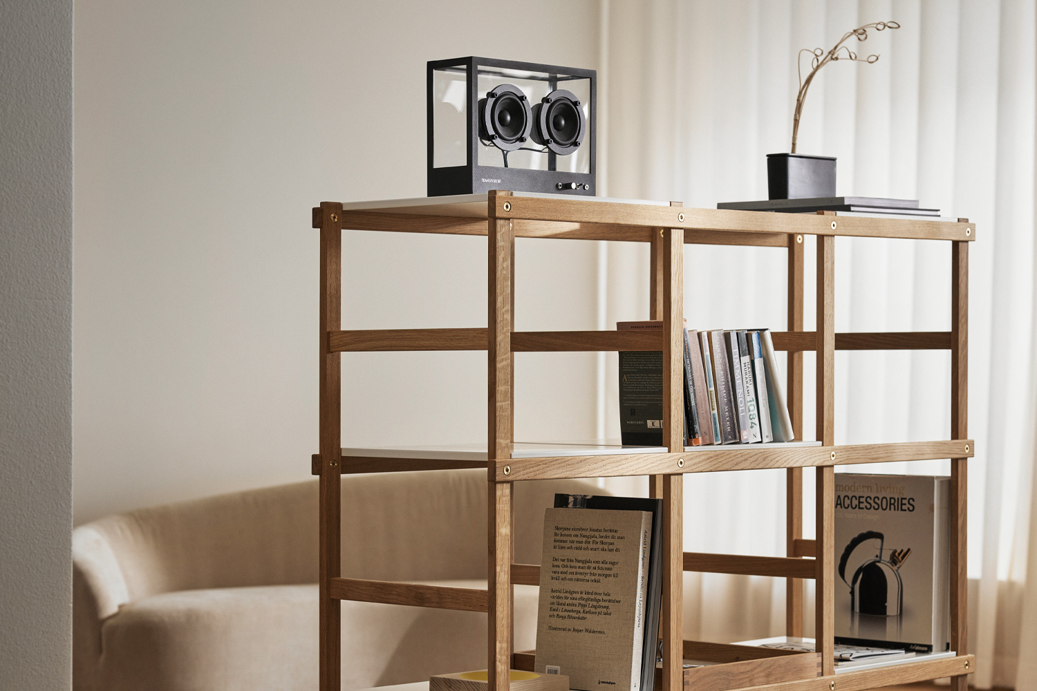 TRANSPARENT(トランスペアレント)は時代を超越するようなデザインと品質の高さを誇るだけでなく、環境汚染につながる無駄な消費を削減するという重大な目標を持っています。その構造は完全にモジュール化され、全ての部品を個別に交換、アップグレード、修理、リサイクルすることができます。このシステムは、技術が急速に進歩していく現代ではスピーカーの未来を保証することができるでしょう。例えばBluetooth規格が更新された場合、所有者は小さなチップ部分を交換するだけで、製品本体を廃棄して買い替える必要がなくなります。「旧モデル」「新モデル」の概念を超えて、地球にやさしいデザインオーディオがあなたの側で音を奏で続けます。