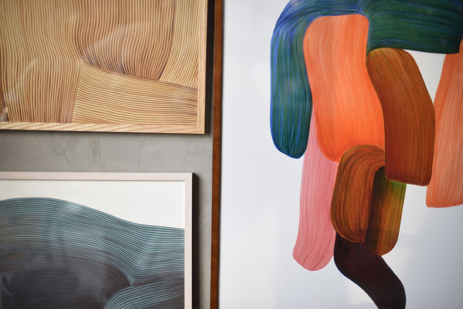 作品の柔らかな雰囲気を大切にし、ポスターに合わせた2種類のフレームをご用意しております。WRONGSHOP(ロングショップ)のポスターはサイズがひとつずつ微妙に違うので、専属の職人がカットと額装を行っております。