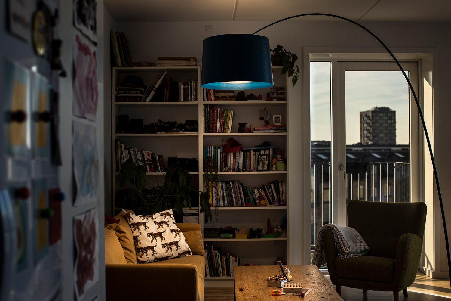 こちらの大型フロアライトは、シェードに乗せる重りによってシェード部分の高さを調節でき、お好みの位置に光をあてることができます。アーム部分はしなやかな強度を持ち、弧を描いた美しいフォルムはお部屋を魅力的に見せます。