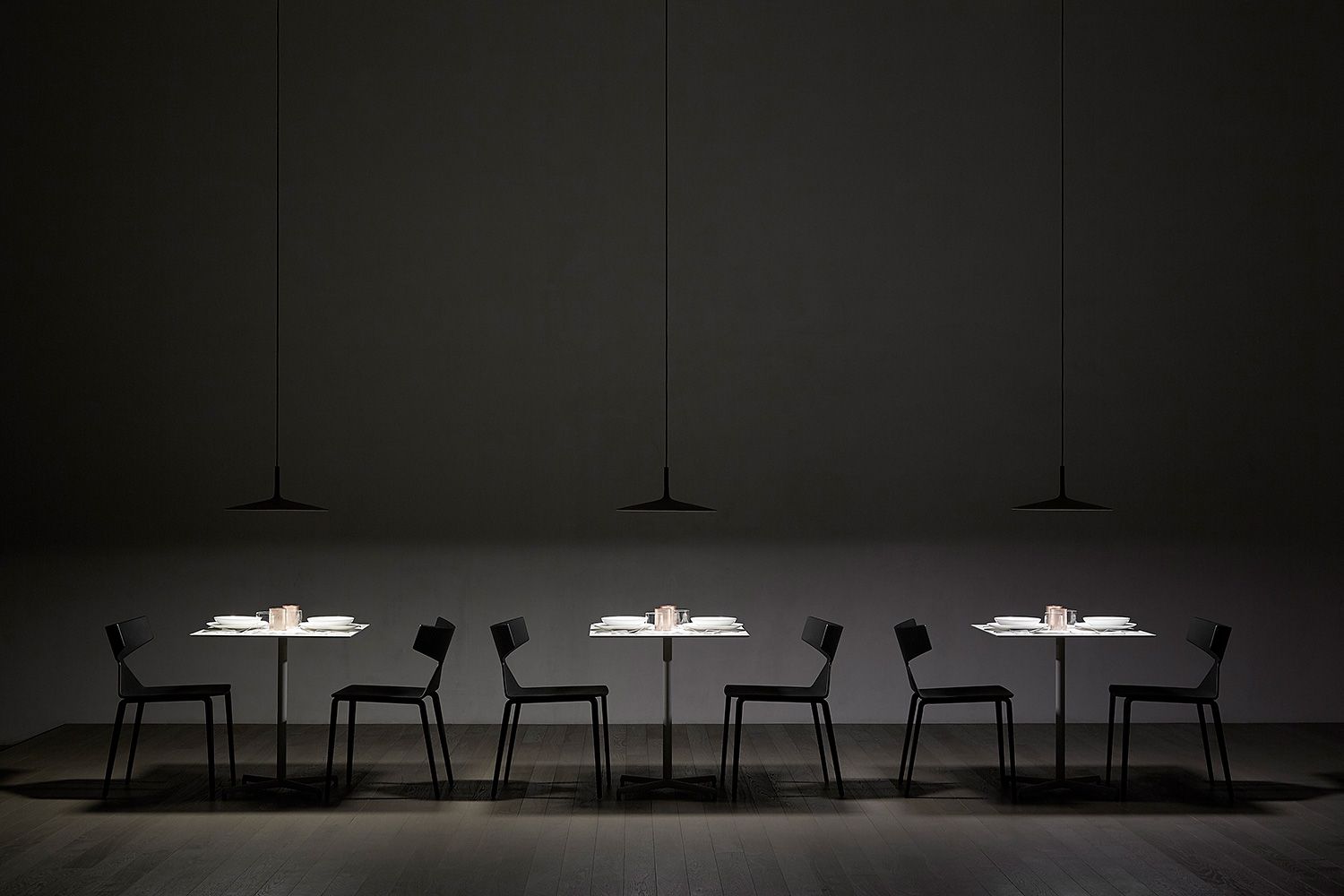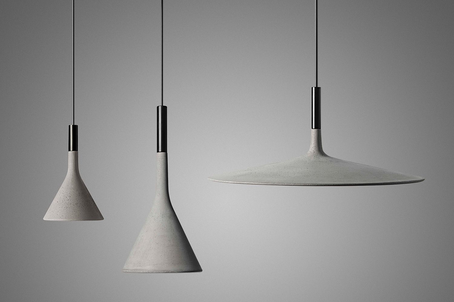 「冷静・沈黙」を意味する”Aplomb(アプロム)”。シェードはコンクリートでできており、その厚さや構造をクリアするまでに年月をかけたFoscarini(フォスカリーニ)の精神やテクノロジーが詰まった渾身の作品です。