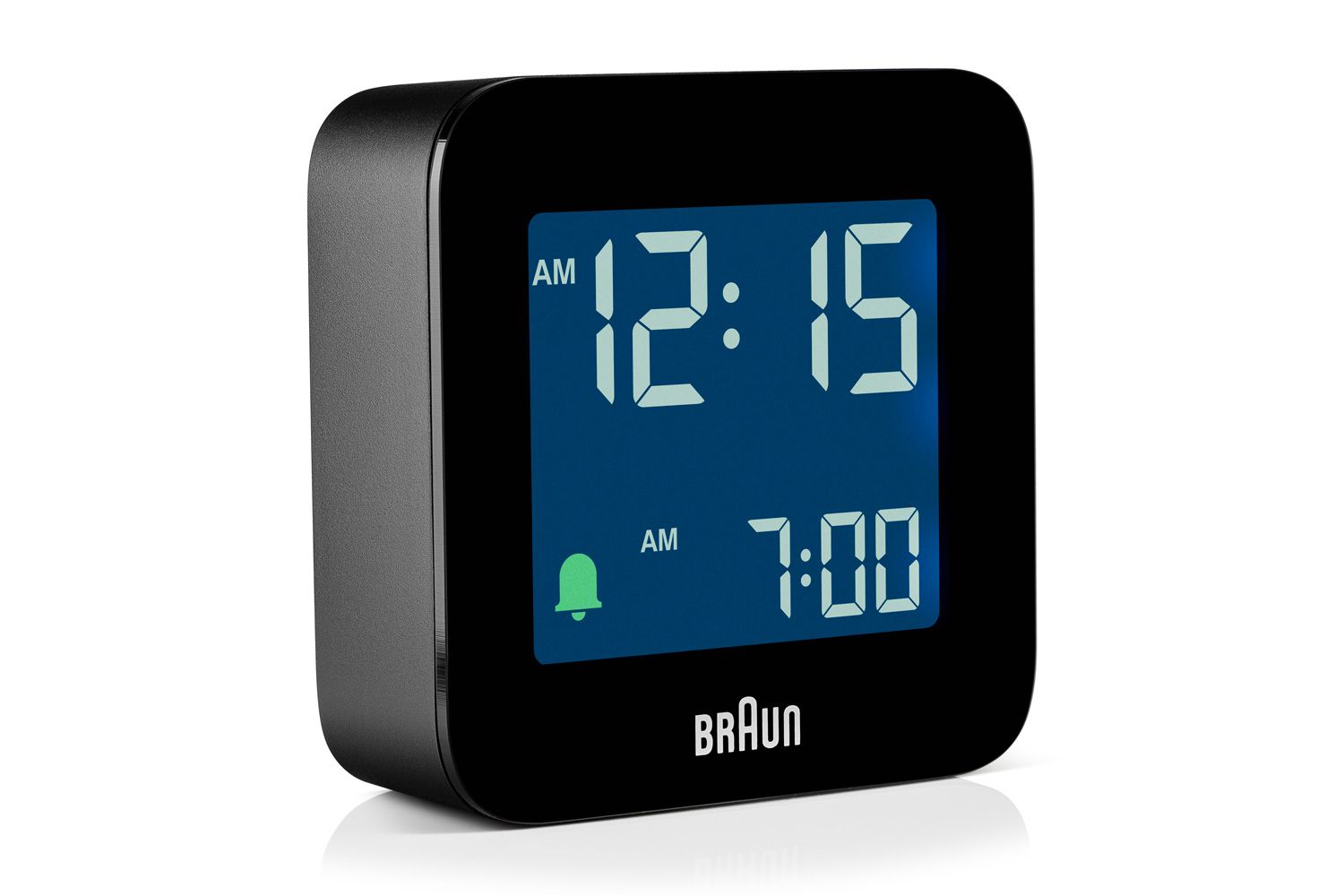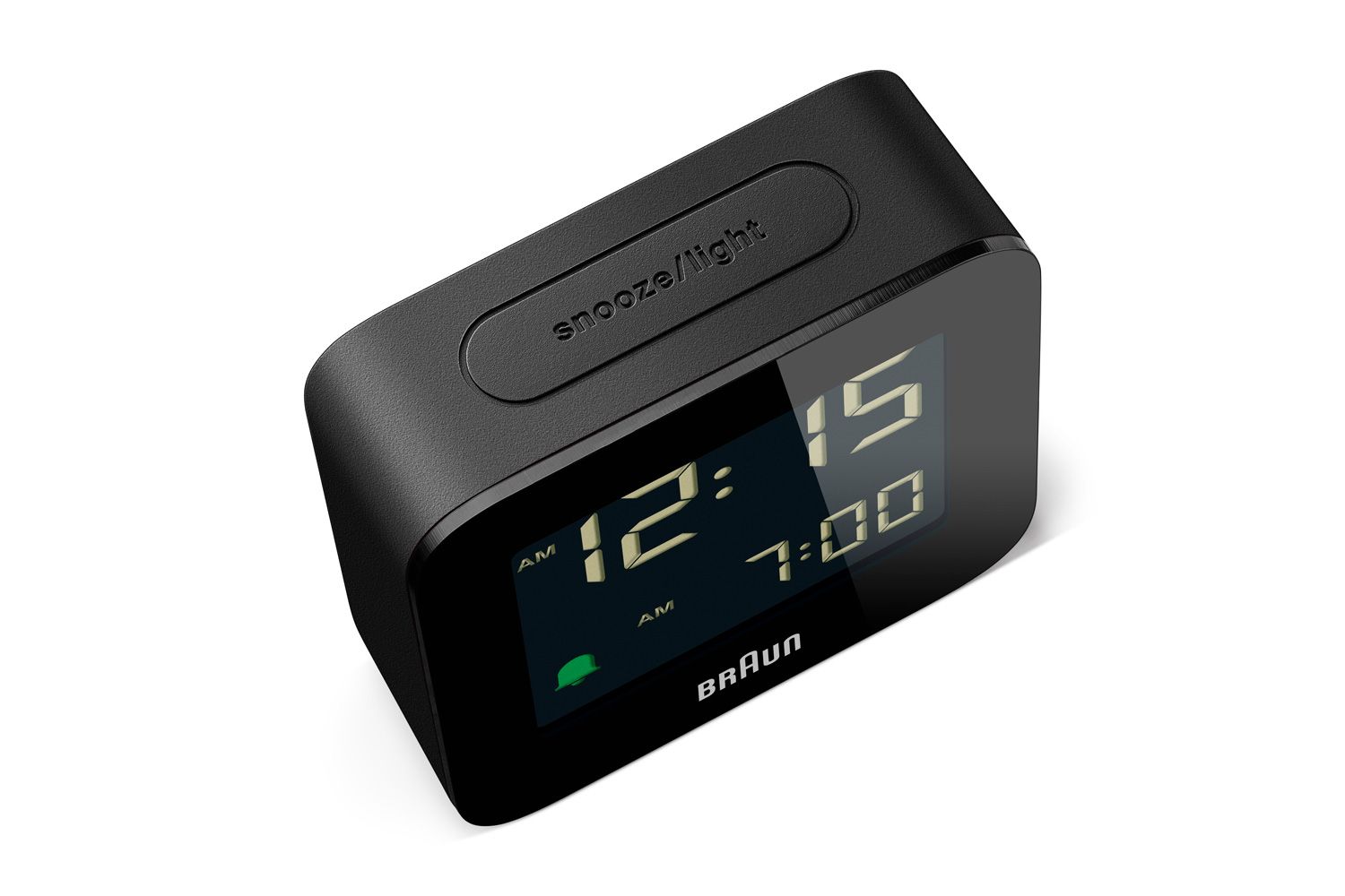 デジタルクロック「DN50(1979年)」をベースに、現代ならではの素材や機能性を高めたモデルです。上部には「スヌーズ / ライトボタン」があり、裏面には「アラームボタン」が配置されています。