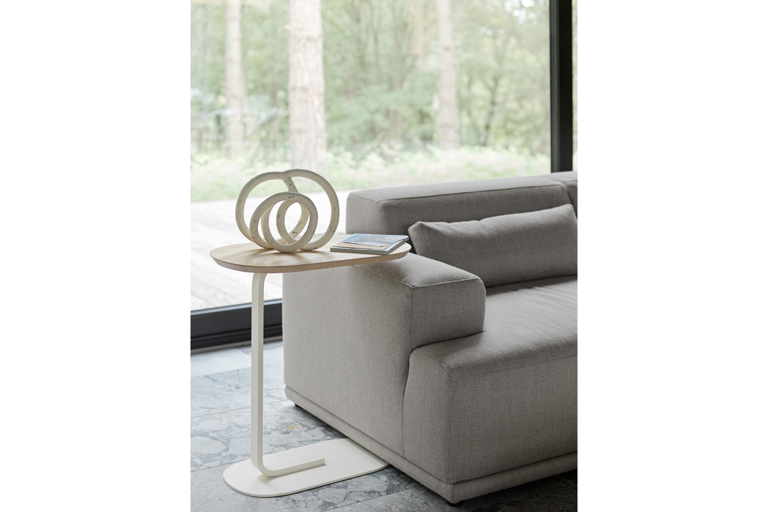 リレートサイドテーブルは、ディスプレイテーブルとしてもお使いいただけるマルチなアイテムです。リノリウムの天板は水にも強いので、お気に入りの花瓶や観葉植物を飾るのもおすすめですよ。(スタッフT.T)