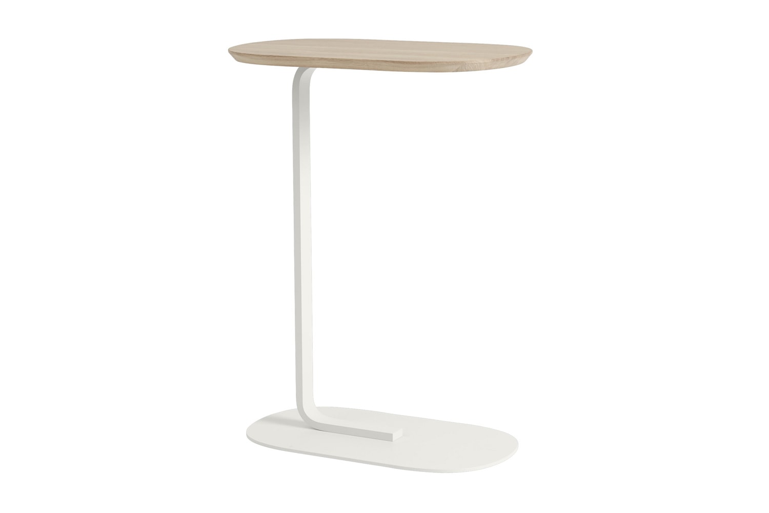 エレガントな印象を見せる楕円形プレートと、細くスタイリッシュなスチールを融合させた、リレートサイドテーブル。コの字型のフォルムで、ベースのプレートは薄いので、ソファやチェアの近くに寄せてお使いいただけます。ドリンクスタンドとしてコップやグラスを置く以外に、花瓶やオブジェを飾るディスプレイテーブルとしても最適です。