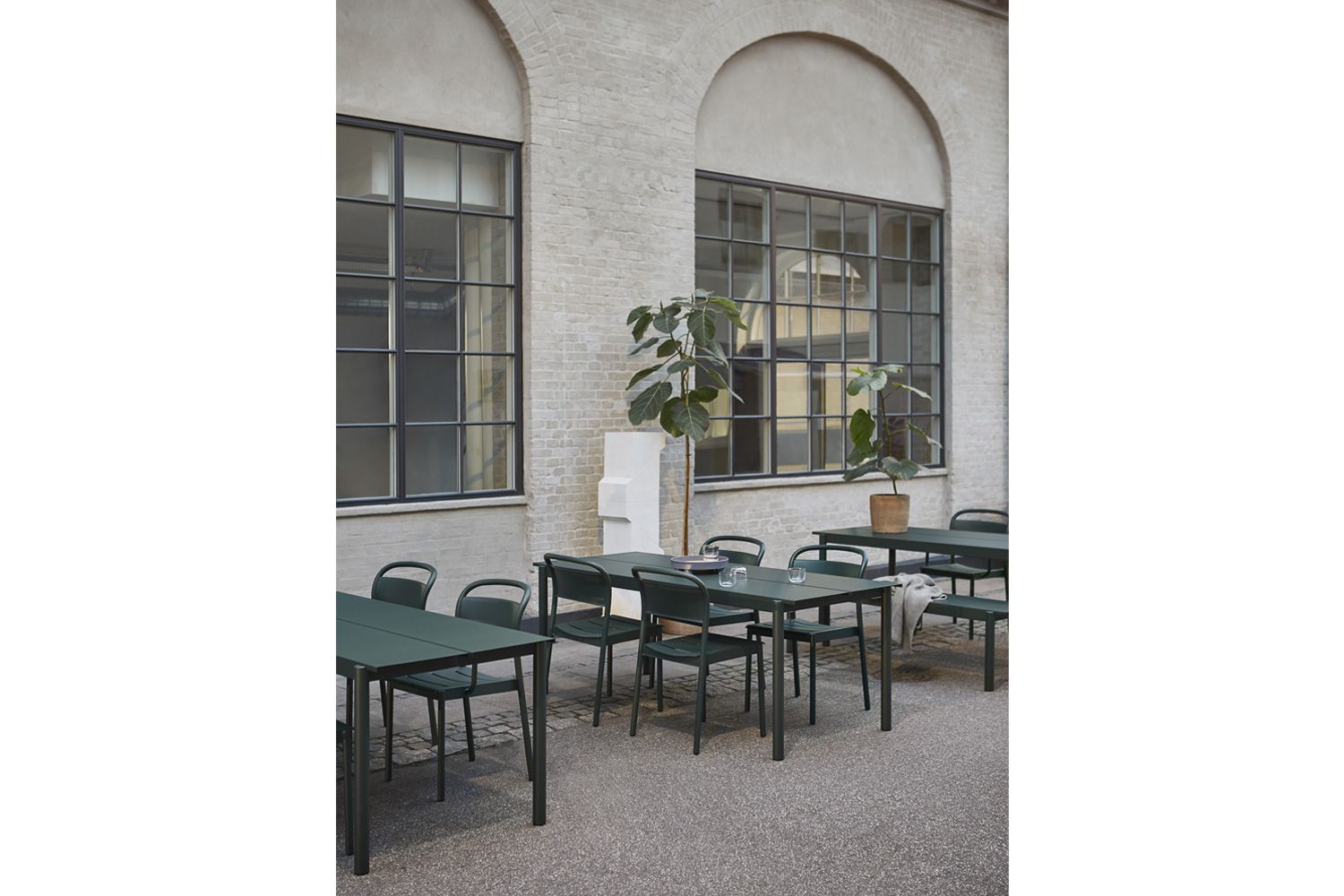 同シリーズには、アーム付きで5脚までスタッキング可能なLINEAR STEEL ARM CHAIR(リニア スチール アームチェアや、チェアと合わせてお使いいただけるLINEAR STEEL CAFE TABLE(リニア スチール カフェテーブル)もあり、ご使用になる人数やシーンに応じてお選びいただけます。