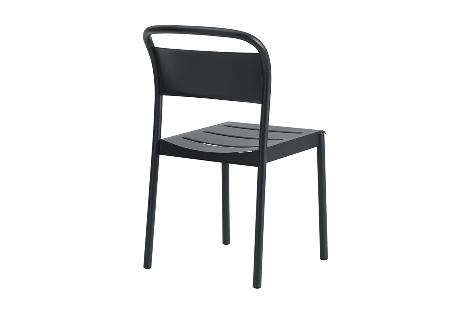 リニア スチール サイドチェアは、人間工学に基づいた滑らかなカーブによって、身体を優しく包み込んでくれます。