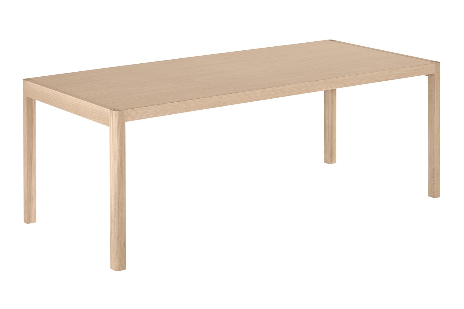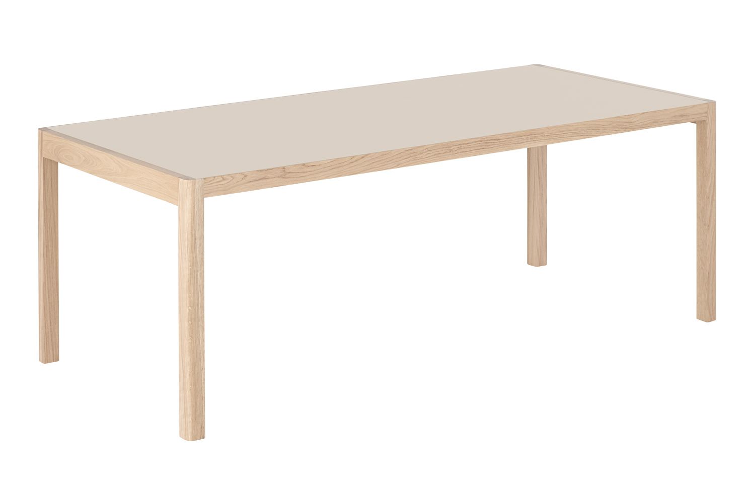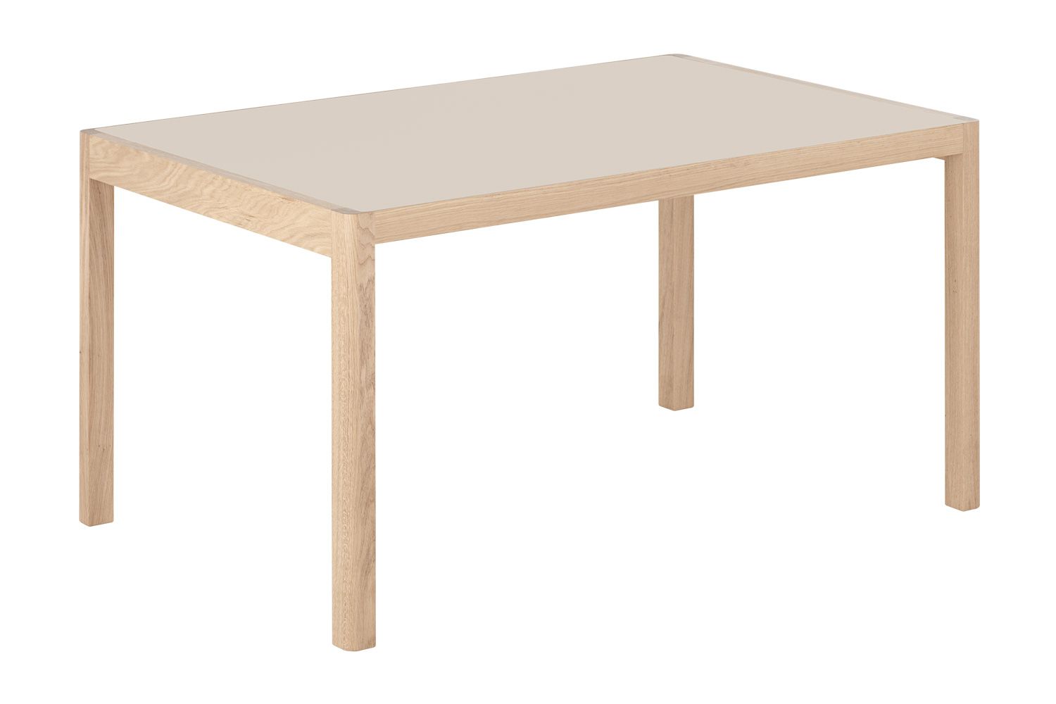 ワークショップテーブルは、天板と4本の脚からなる、シンプルで上品な佇まいが特徴です。天板は、北欧の伝統的な素材で木目の美しいオーク材と、絹のようなマットな質感を持つリノリウムの2種類からお選びいただけます。