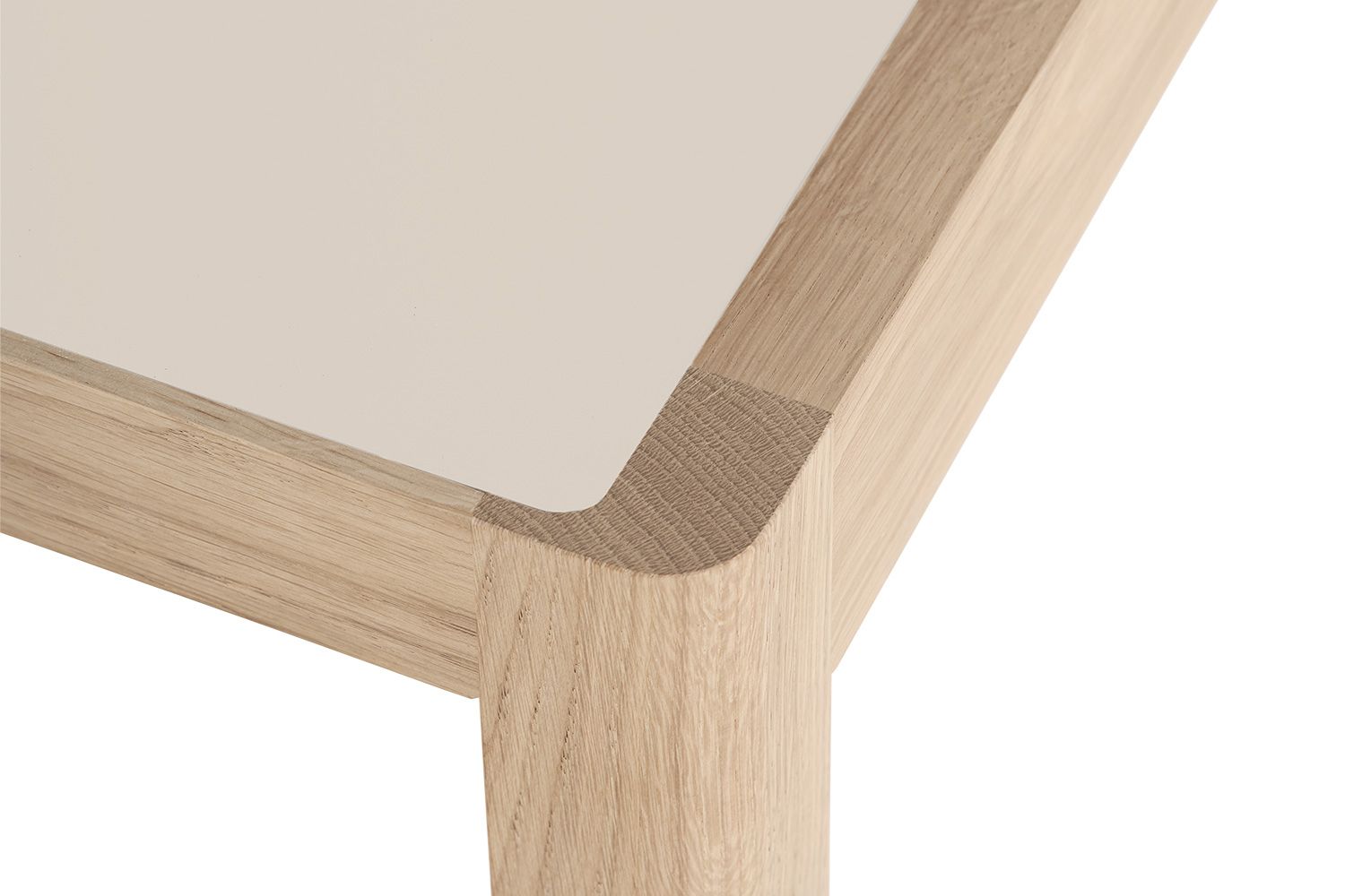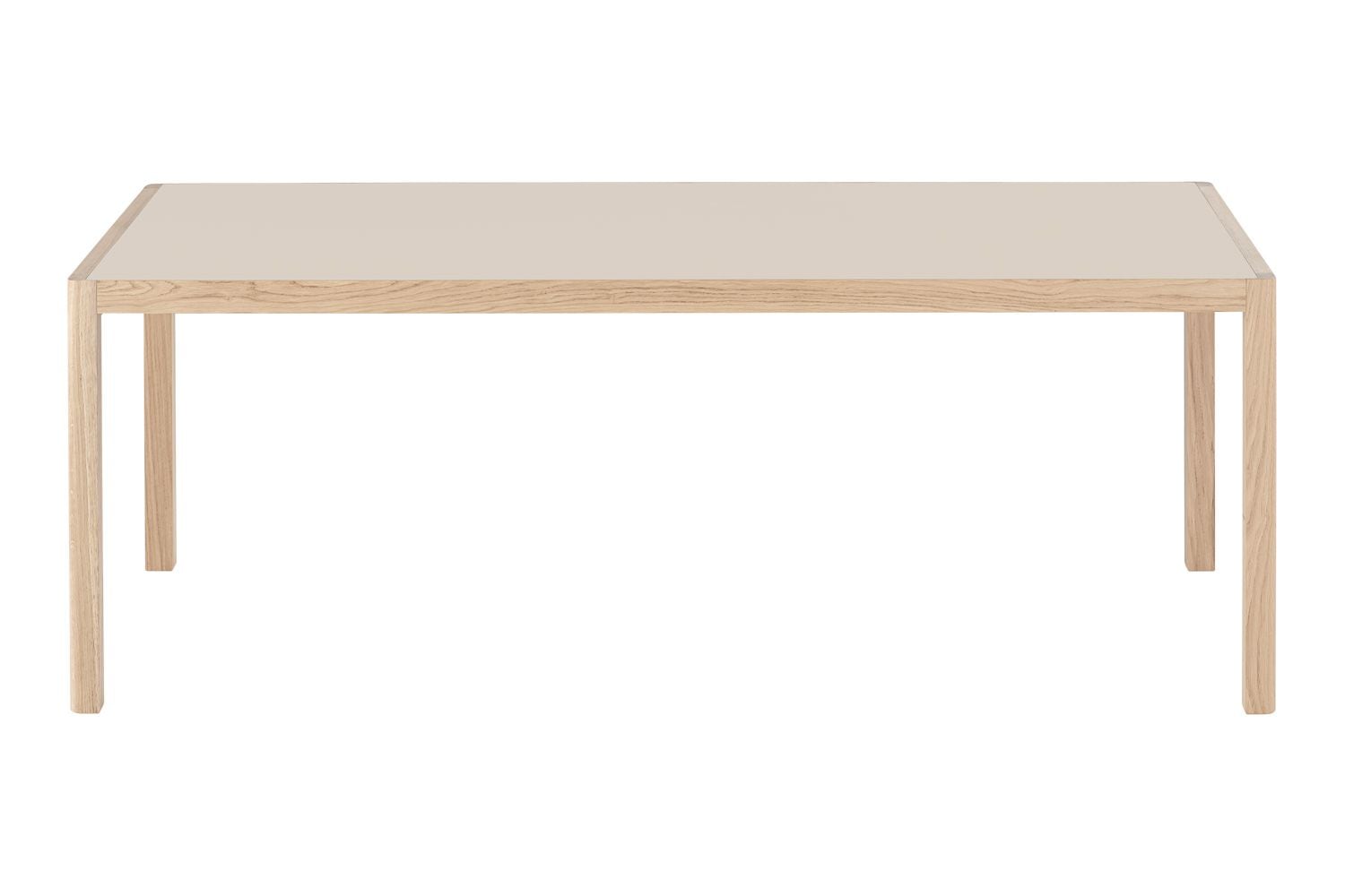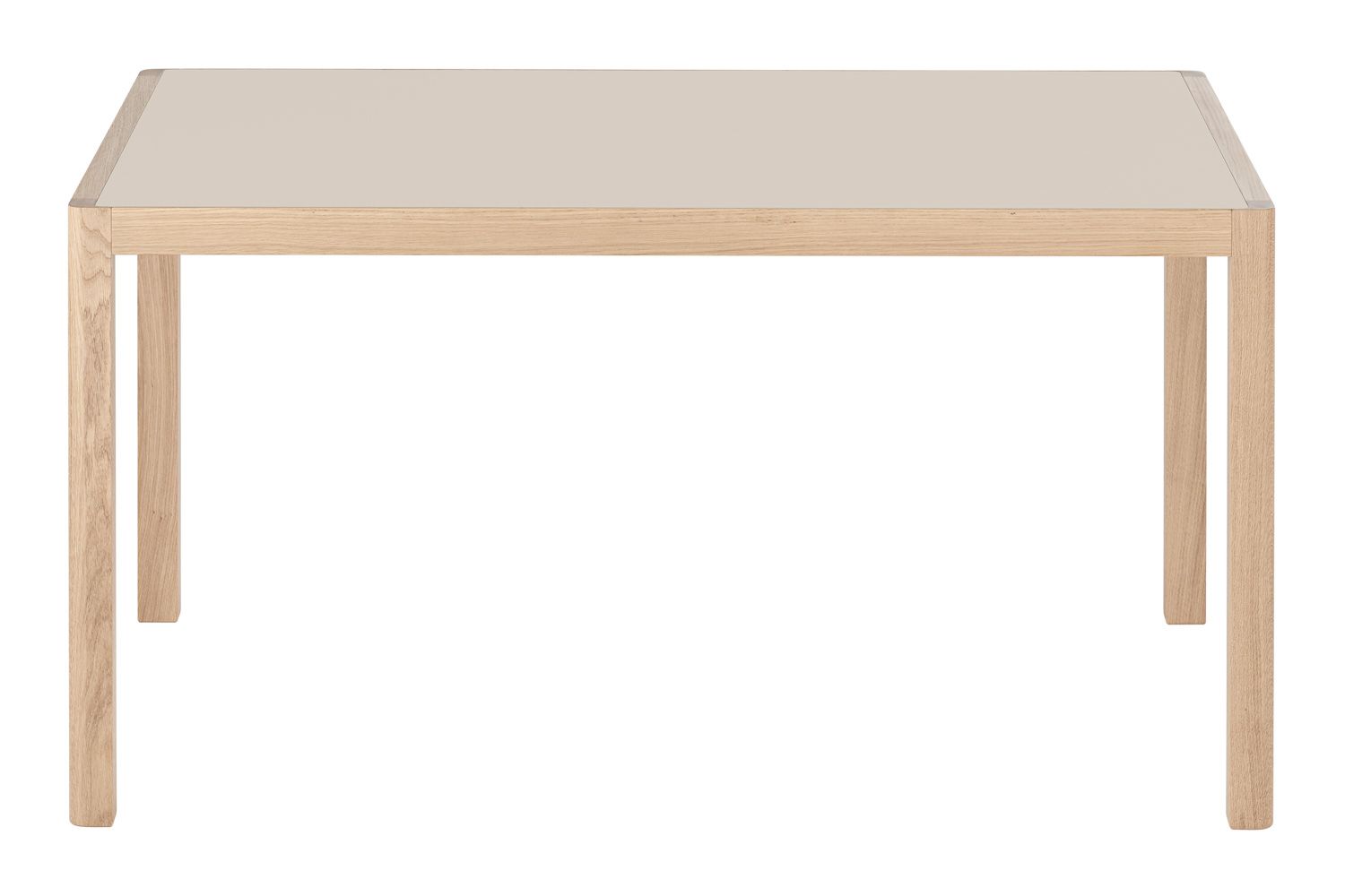 ワークショップテーブルは、天板と4本の脚からなる、シンプルで上品な佇まいが特徴です。天板は、北欧の伝統的な素材で木目の美しいオーク材と、絹のようなマットな質感を持つリノリウムの2種類からお選びいただけます。