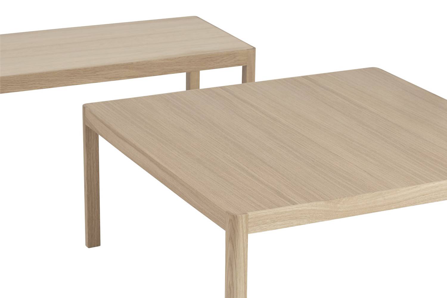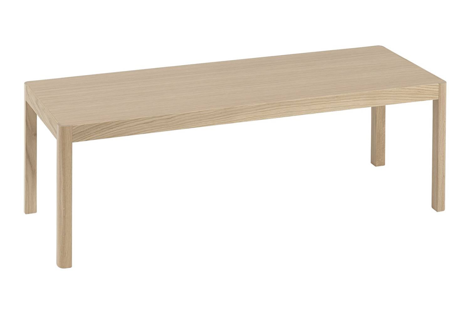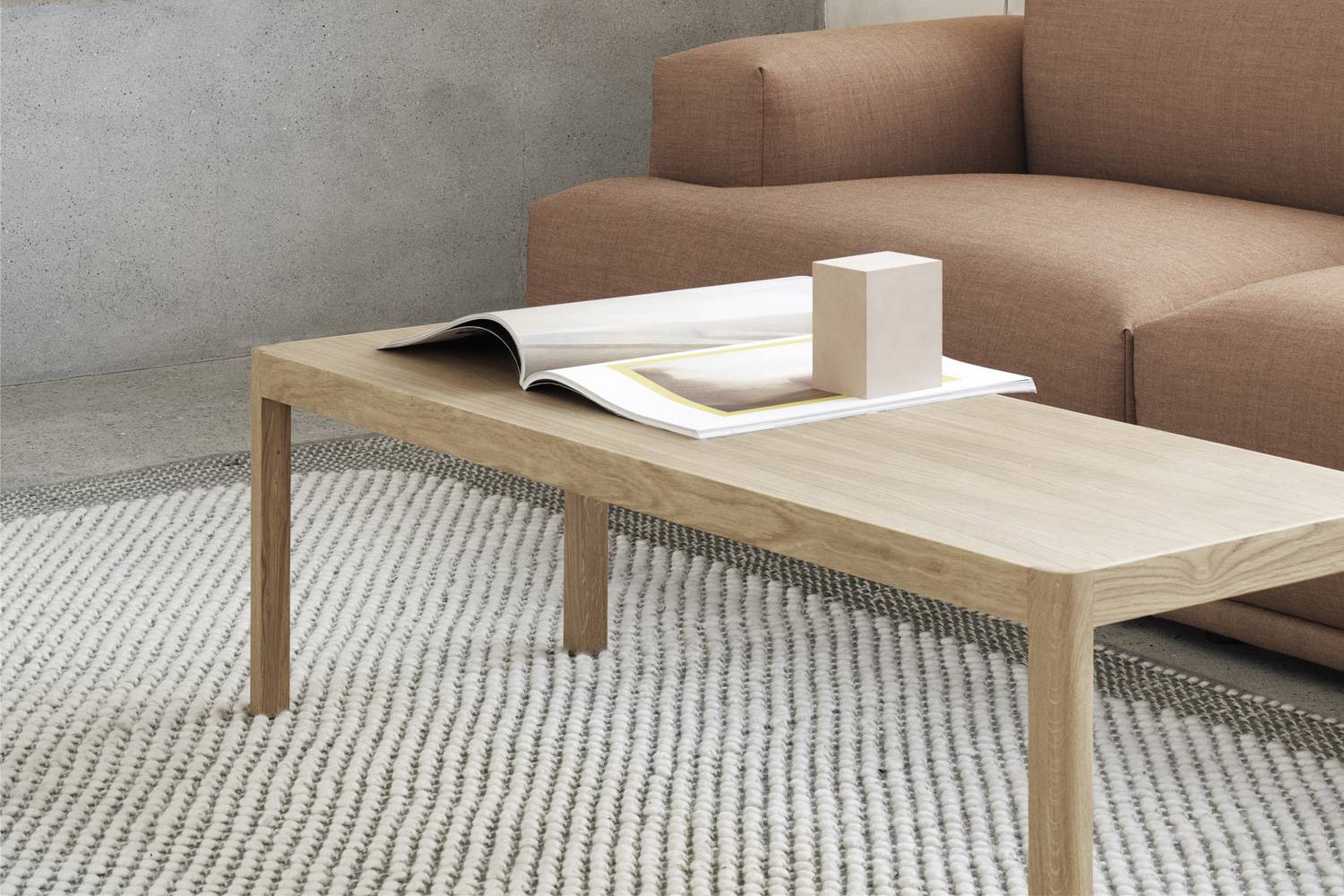 ワークショップコーヒーテーブルは、天板と脚部をシームレスに融合させた、シンプルな佇まいが特徴です。天板に使われているのは、北欧の伝統的な素材で、美しい木目を持つオークべニア。水やカビに強く、家具としての強度にも優れています。