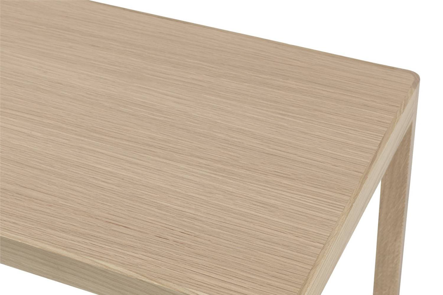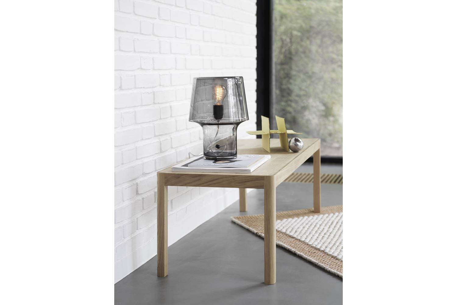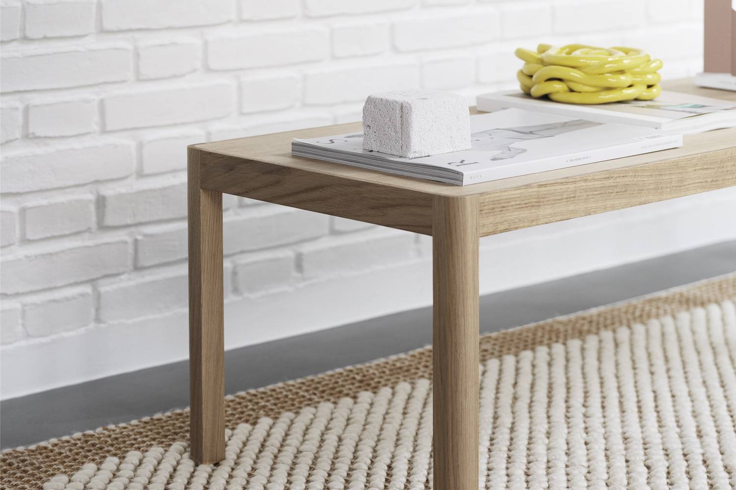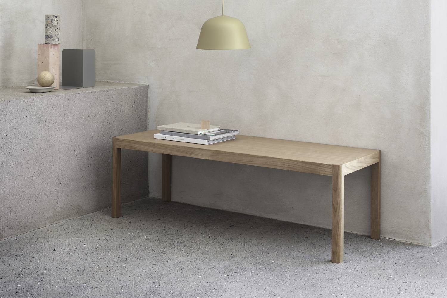 ワークショップコーヒーテーブルは、天板と脚部をシームレスに融合させた、シンプルな佇まいが特徴です。天板に使われているのは、北欧の伝統的な素材で、美しい木目を持つオークべニア。水やカビに強く、家具としての強度にも優れています。