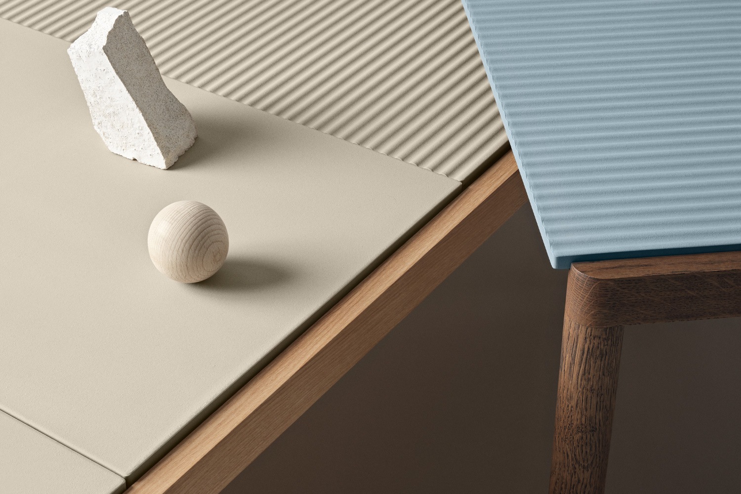ブリュッセルを拠点とする Sylvain Willenz(シルヴァン・ウィレンツ)によりデザインされたCOUPLE COFFEE TABLE(カップル コーヒー テーブル)は、天板は 3カラー(ペールブルー/サンド/トープ)と 2種のモデル(機能的な滑らかで平らなプレーンの天板/彫刻のように凹凸のある波打ったウェービーの天板)、フレームは2種(オーク/ダークオイル)、サイズは3展開あるので全部で36種類のバリエーションよりお選びいただけます。