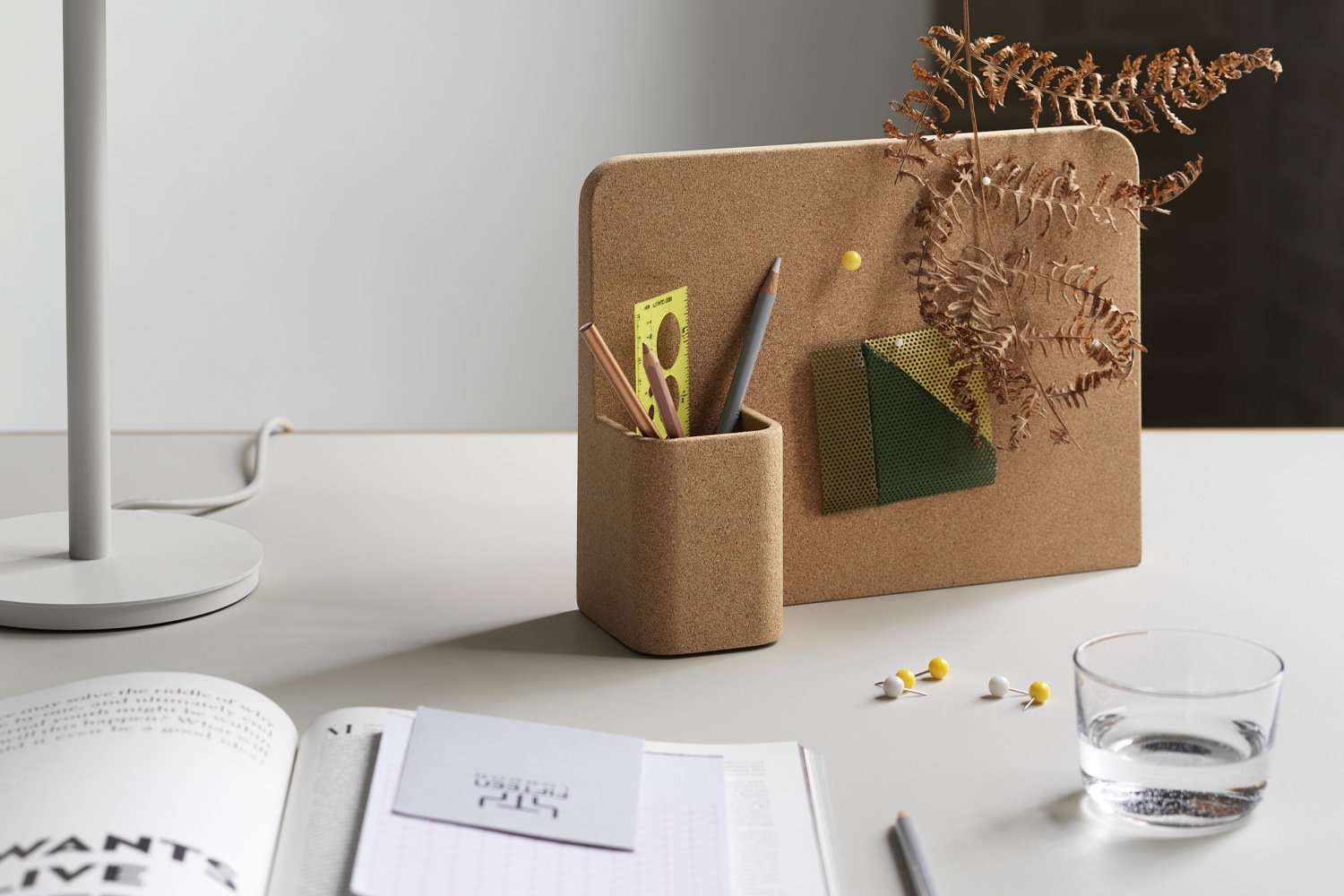写真やお土産、葉っぱなどを貼って自分たちの小さな世界を作り、その時の気分を反映させて新しい雰囲気を作り出すことができる魔法のようなボードは、思い出をコルクの温かみとモダンかつタイムレスな表現によって、新たな視点に変換することにより生まれました。使用されているコルクは再生可能なコルク樫の樹皮から採取された素材でできています。