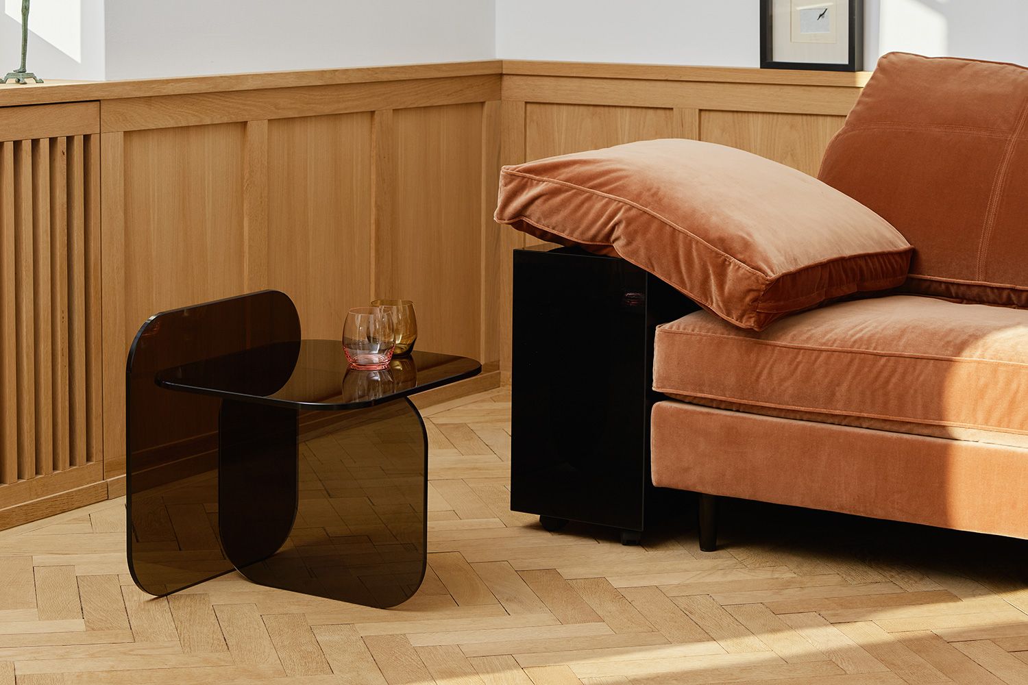SOL SIDE TABLE(ソル サイドテーブル)は、2021年にドイツの家具メーカーClassiCon(クラシコン)より発表された、スペイン出身でバルセロナとベルリンを拠点とするデザイナーデュオ、OrtegaGuijarro(オルテガギハーロ)によりデザインされたサイドテーブル。 サイズの異なるガラスパネルを組み合わせた構造は驚くほどシンプルに見えますが、実は非常に複雑なバランスで成り立っています。