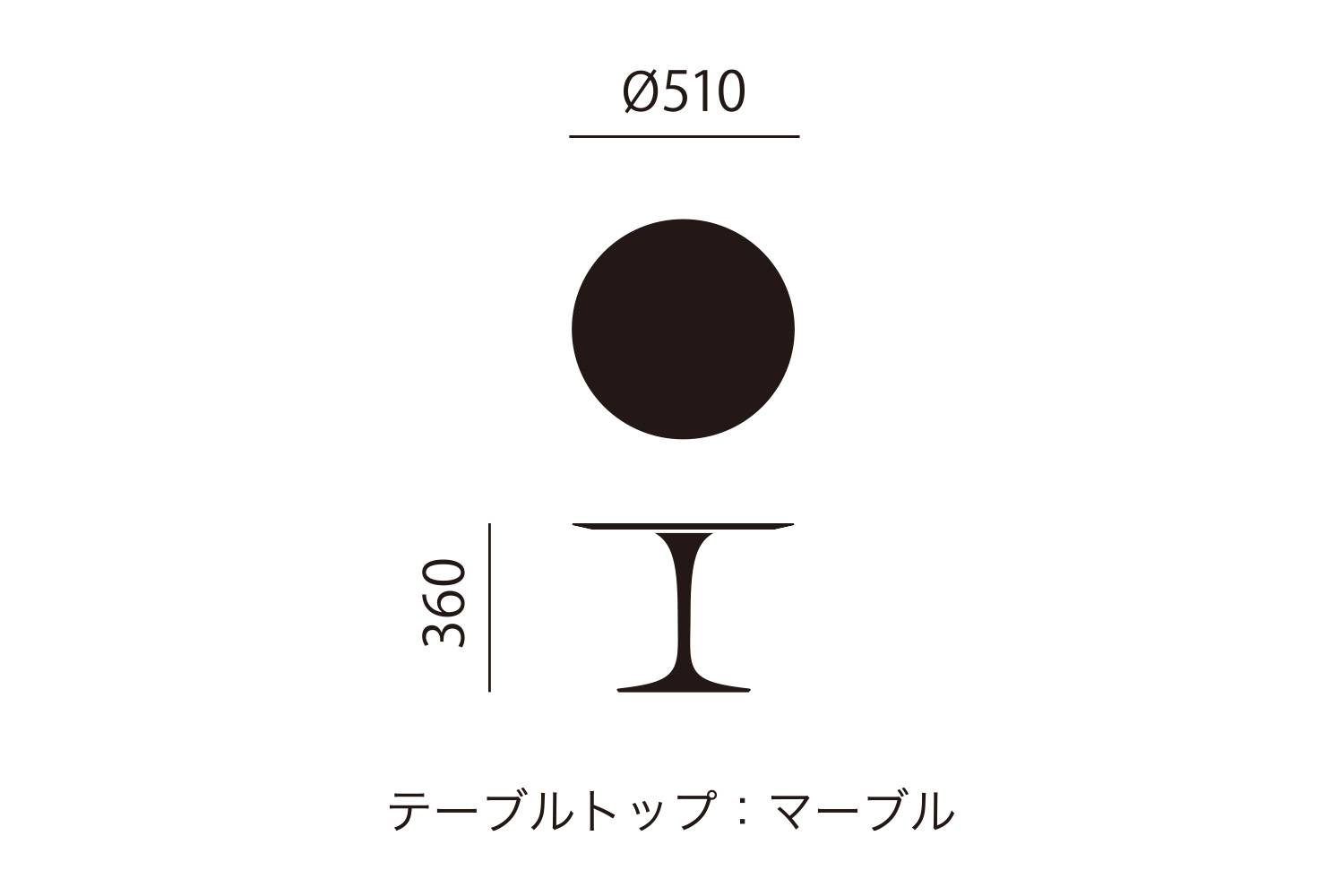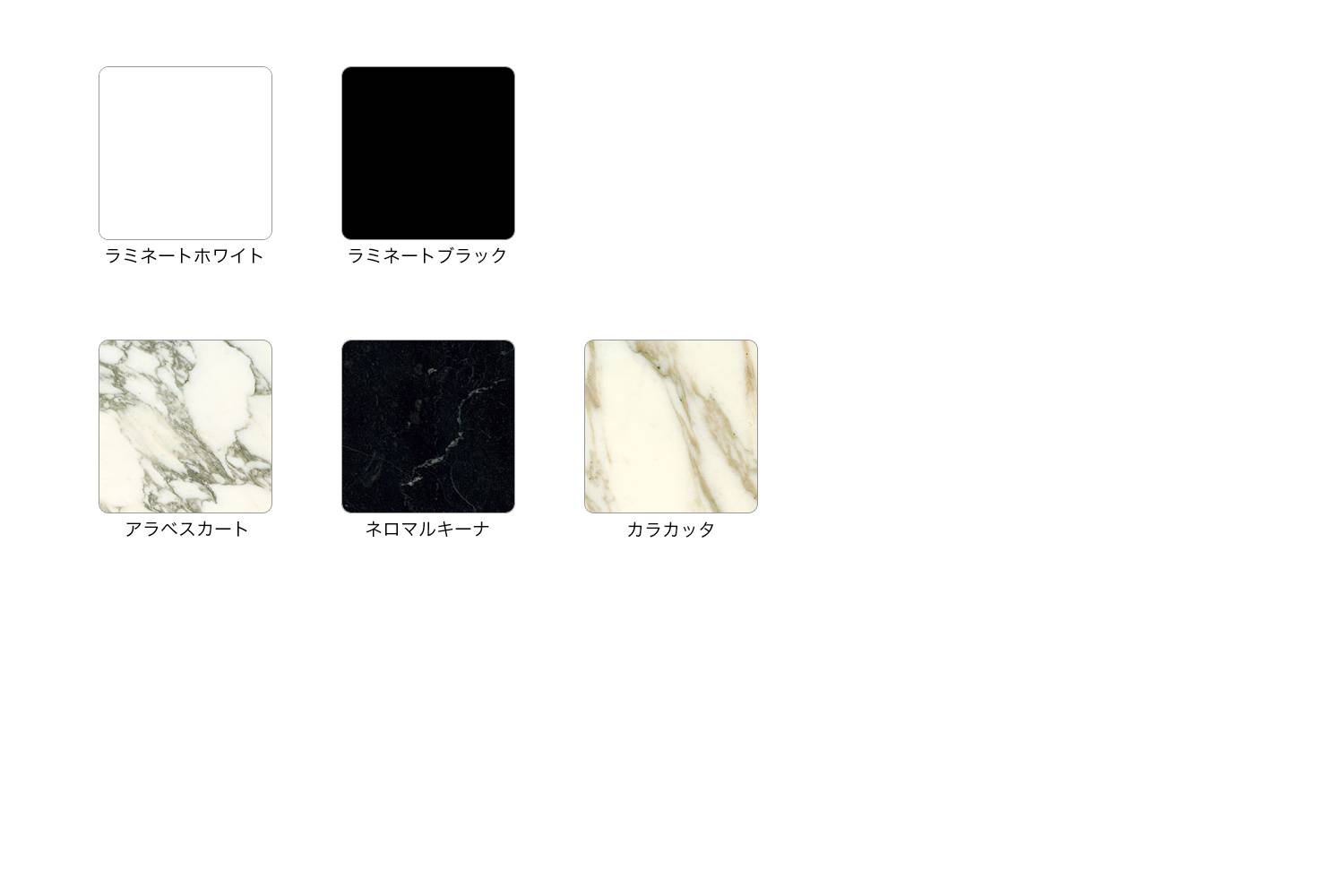 様々な空間でご使用いただけるよう、脚部はホワイトとブラックの2種類、天板はラミネート、大理石の2種類から、サイズはΦ51cm、Φ91cmの2サイズからお選びいただけます。