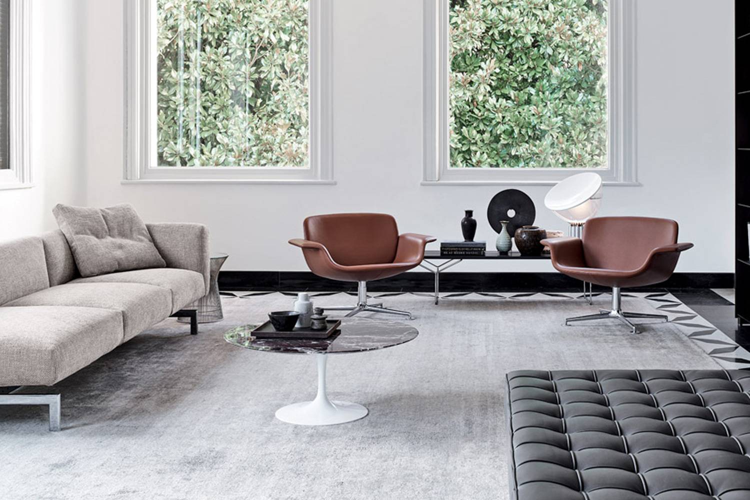 ドイツ出身のハンス・ノル(ウォルター・ノルの息子)は、1938年にニューヨークで家具ブランド、Knoll(ノル)を設立しました。ノルの経営にはデザイナーであり妻であるフローレンス・ノルも務め、夫婦で事業の発展に取り組みました。「ノル社の歴史は、近代デザイン運動の歴史でもある」と言われ、ミッドセンチュリーモダンを代表する家具ブランドとして国際的地位を確立しました。代表作には、ミース・ファン・デル・ローエの「バルセロナ・チェア」やエーロ・サーリネンの「チューリップチェア」など、20世紀デザインに多大な影響を与えた数々の名作家具があります。「使われる芸術品」と評されたノルの家具は、美しさと心地良さがあり、家庭のあらゆるシーンにおいて、モダンでありながら温かな空間を生み出してくれます。