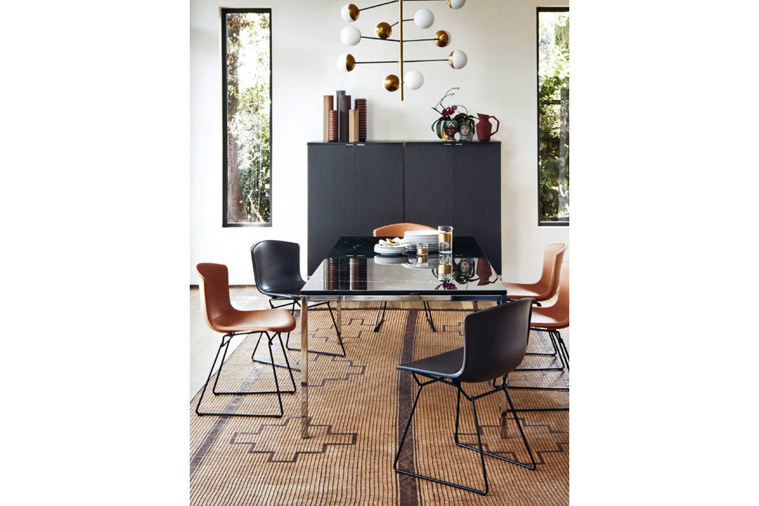スチールワイヤーの仕上げは、ポリッシュクローム、ブラック、ホワイト、ブロンズの4タイプ、シートの張地はナチュラル、ブラック、ダークブラウンの3色からお選びいただけます。 上質なモダンデザインのサイドチェアは、ご家庭のリビングやダイニングにはもちろん、オフィス空間にもおすすめです。