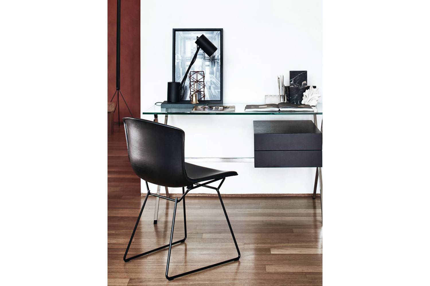 ハリー・ベルトイアは、ダイヤモンドチェアをはじめに、数々の椅子を生み出しました。 ベルトイア プラスチックサイドチェアを上品な牛革張りで仕上げた、フルカバータイプのサイドチェア カウハイドシートは、落ち着きのある、エレガントな佇まいを見せてくれます。