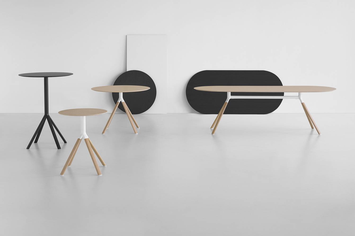 日本のデザインは自然からインスピレーションを受けていることが多く、このフォルクの脚部もまるで木の枝のようです。 複数のサイズと形状の天板があり、ダイニングルーム、リビングルームはもちろんのこと、オフィスにも最適です。