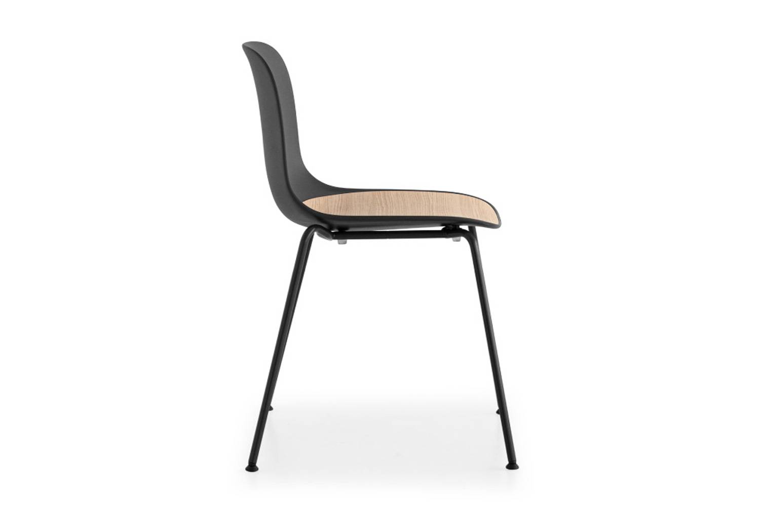 シートシェル全体はポリプロピレンでできており、座面部分は木材になっています。 プラスチックの軽快さと木の温かみをあわせもったチェアです。 シートシェルにファブリック張ったモデルもございます。