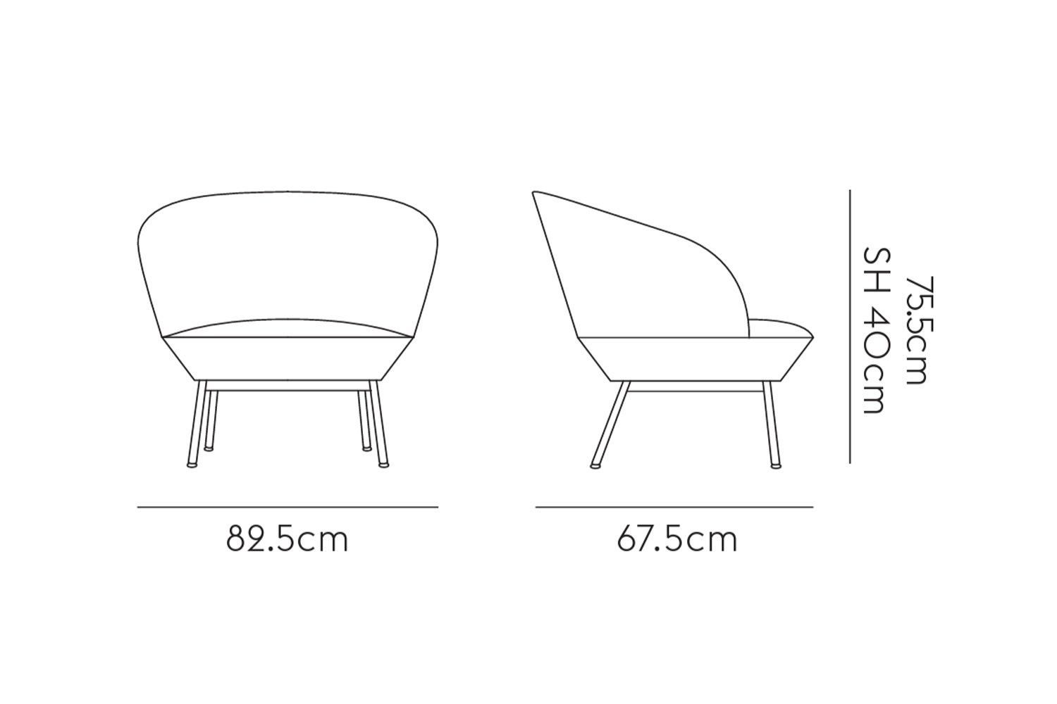幅82.5 × 奥行67.5 × 高さ75.5cm / 座面の高さ40cm