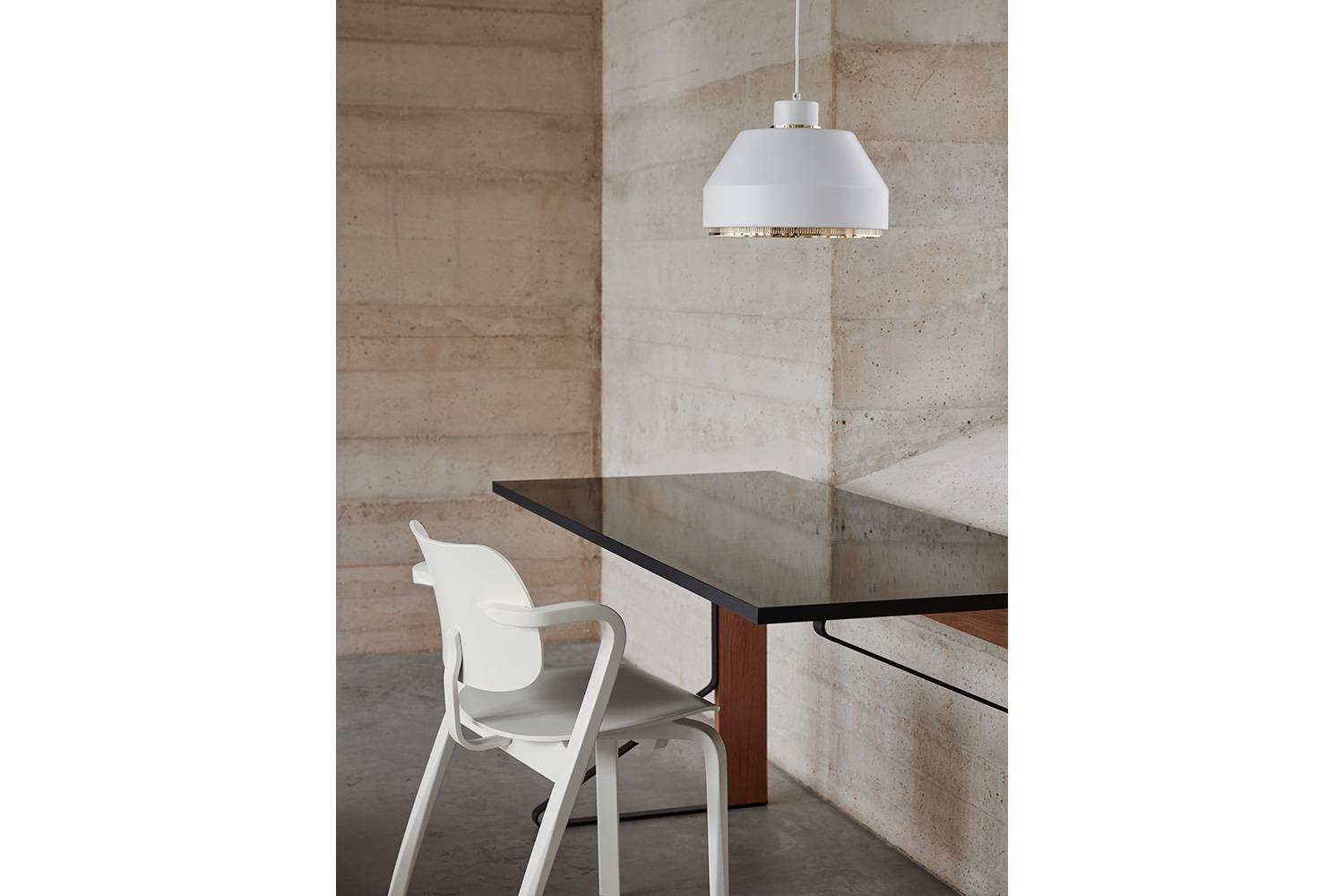 アルヴァ・アアルトとアイノ・アアルトがともに設計したマイレア邸は、20世紀建築の中でも類を見ない傑作住宅として知られています。 現代でも、マイレア邸の図書室ではAMA500 ペンダントが、温かな光を灯しています。 柔らかな光を放つスチール製のAMA500ペンダントは、ダイニングテーブルやデスク上の一灯として吊るすのに最適なサイズです。