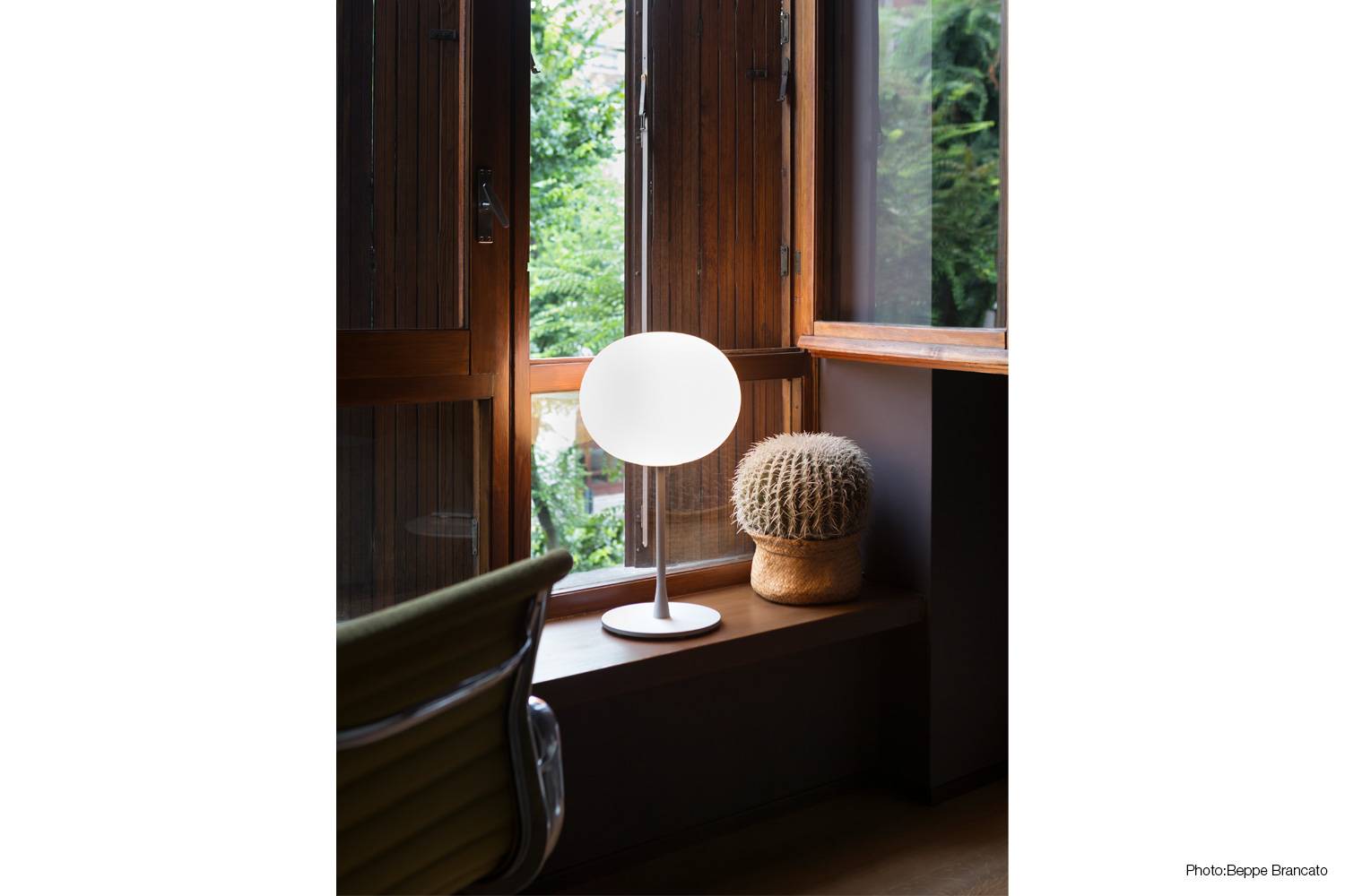 グローボール Tは、シンプルなデザインながら、存在感と安定感が少し変形した丸いガラスグローブです。その親しみやすさが1998年の発売以来世界で高い人気を得ています。 白いガラスの球体のグローブに、台座部分の縁を残してほとんどがグローブ内部に隠れるくらい極小な灯具ボディを組み合わせ 、 暖かく上質な光が、空間全体を癒します。 ガラスグローブは正円でなく、横方向に拡がりをもたせることによって、シンプルでありながらデザイン上のアクセントを保っています。 ランプ挿入のためのガラス開口部を極限まで小さくすることにより、ガラスグローブ全体が余すところなく発光するように工夫されています。 シェードには一切影が映らない、 360度どこからみても隙のない美しさです。
