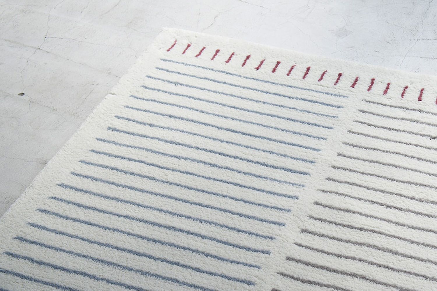マックス・ビル財団監修のもと、染色後の毛糸サンプルを1色1色チェックし、承認を得て商品となりました。 国内で製糸された毛糸を使用し、職人によって一枚一枚手作業で作られた日本製の製品です。 パイルの長さは1.5cmあり、ふっくらと柔らかな触り心地。床暖房・ホットカーペットにも対応しており、オールシーズン快適にご使用いただけます。