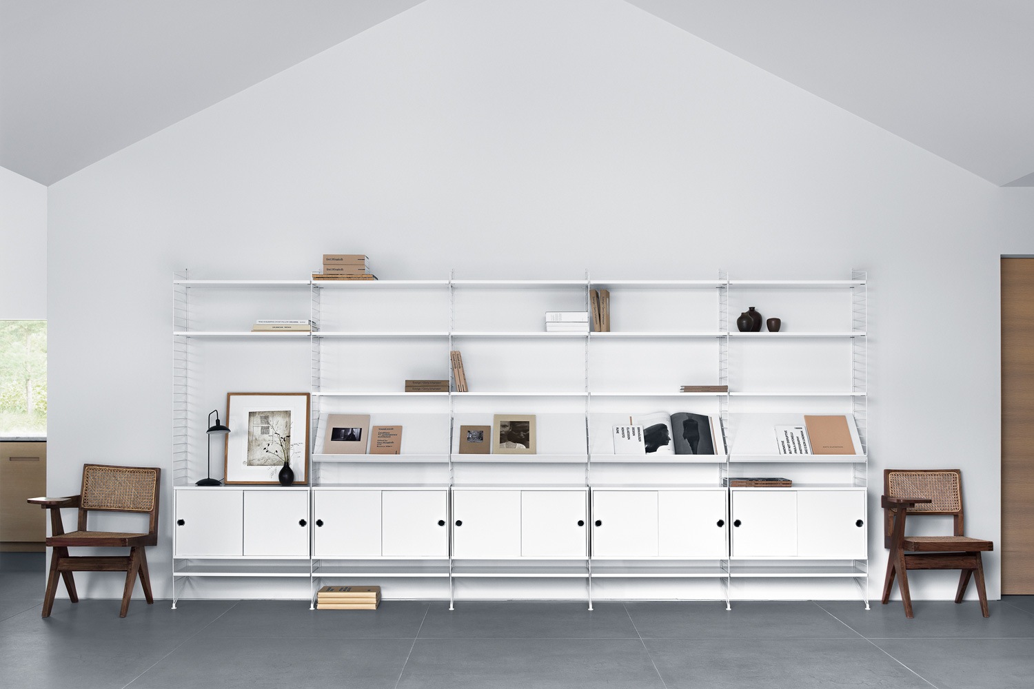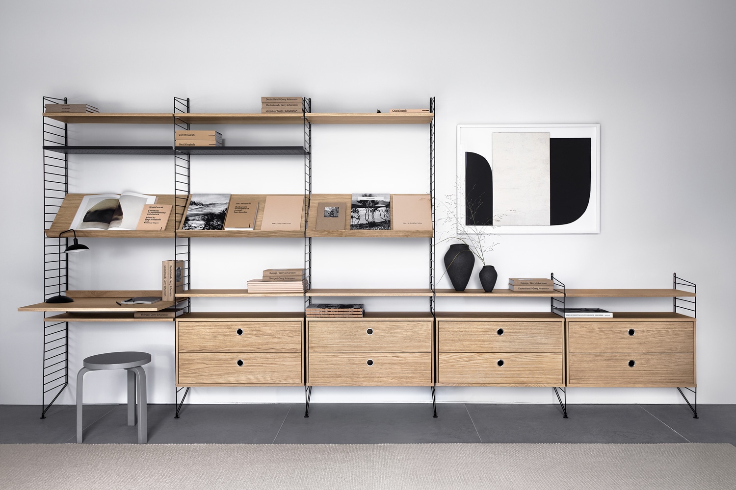 2004年のブランドリニューアルにより、String® のラインナップは入念に見直され、時代を超越したスカンジナビアデザインのスタイルとして再注目されてきました。今では、一般家庭にとどまらず、オフィスや公共空間など、多様な収納ニーズに対するソリューションとして採用されています。