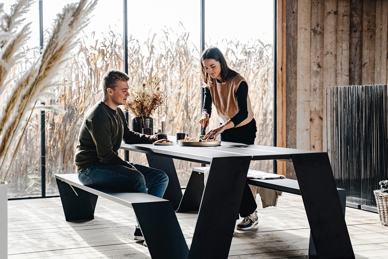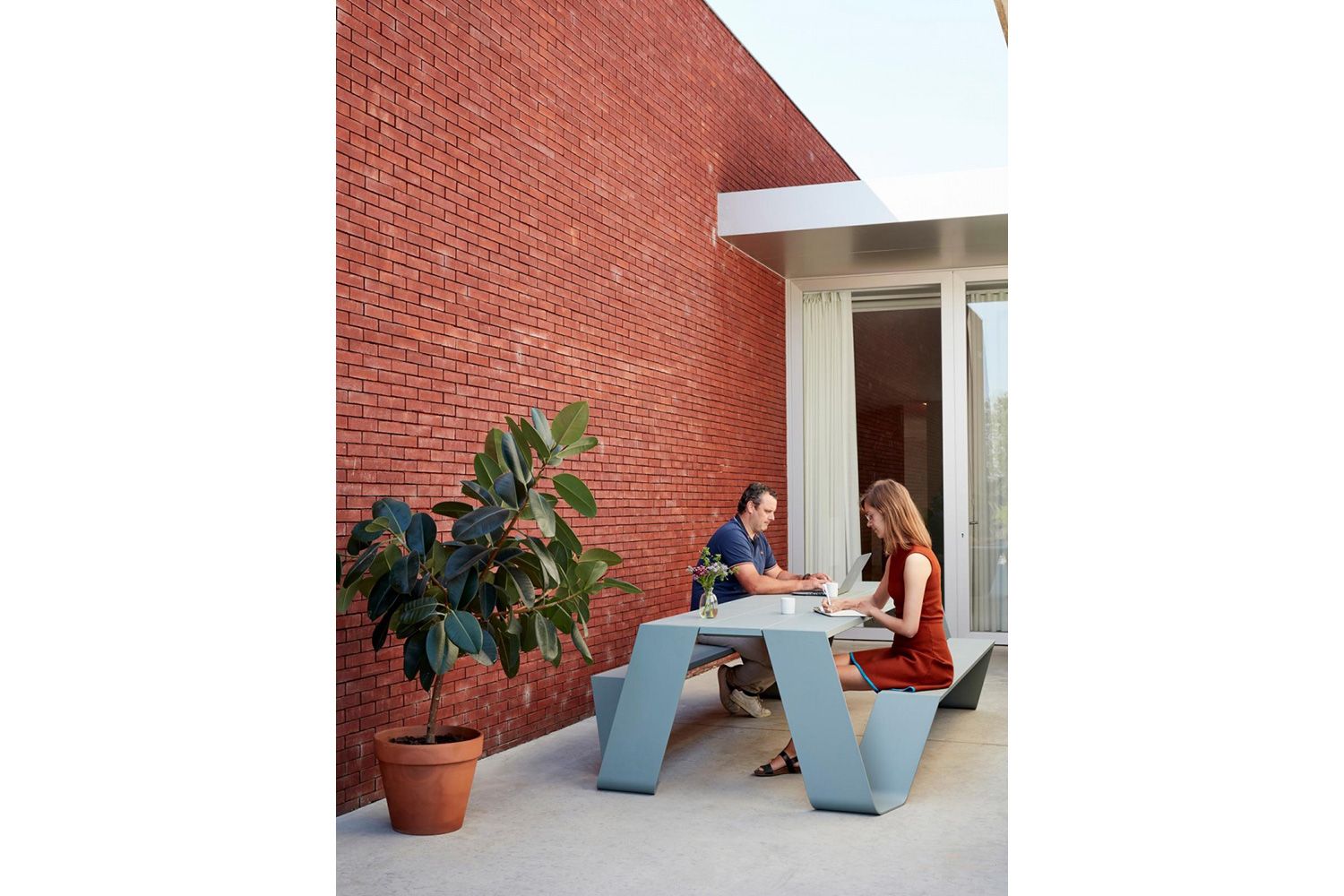 extremis(エクストレミス)はアウトドア家具を専門にデザインする稀有なブランドです。ヘッドデザイナーであるDirk Wynants(ディルク・ワイナンツ)は「私たちが作っているのは家具ではなく“tools for togetherness(人々が集うための道具)”なのだ」というポリシーのもと、人と人が共に過ごす時間の価値を向上させるためのアウトドア家具を提案しています。現在では、屋外だけでなく、オフィスのコミニュケーションエリアなどの屋内スペースでも、その活躍の場を広げています。