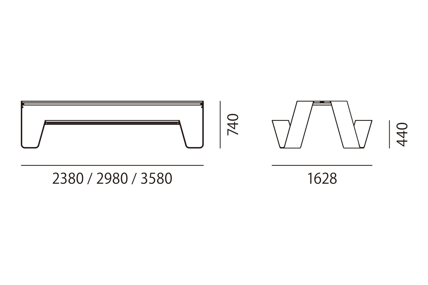 幅358 × 奥行162.8 × 高さ74cm / 座面の高さ44cm