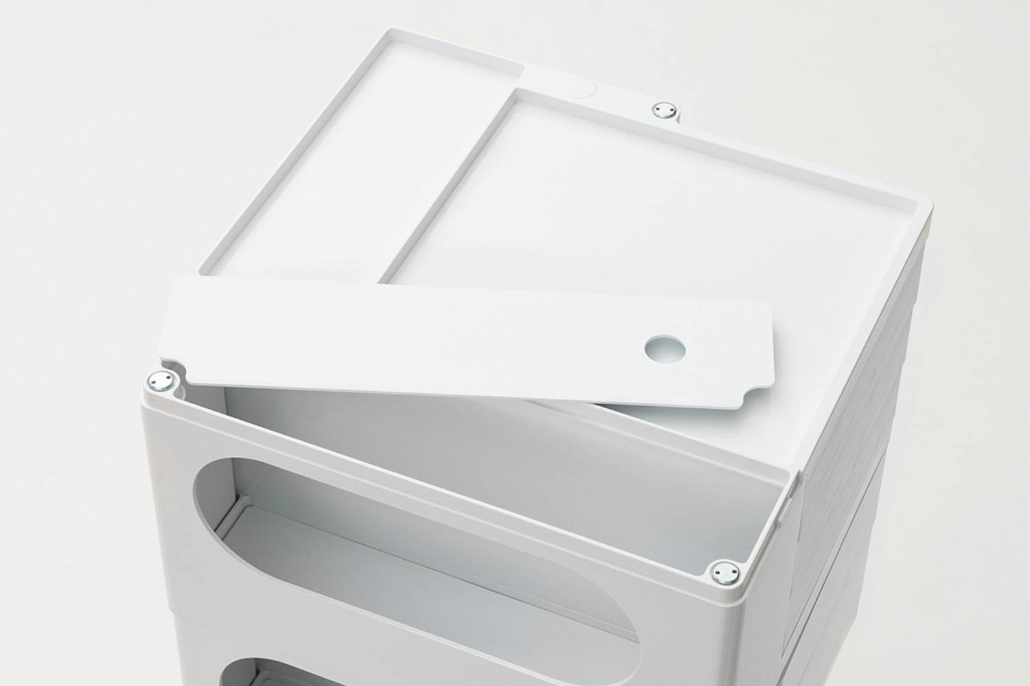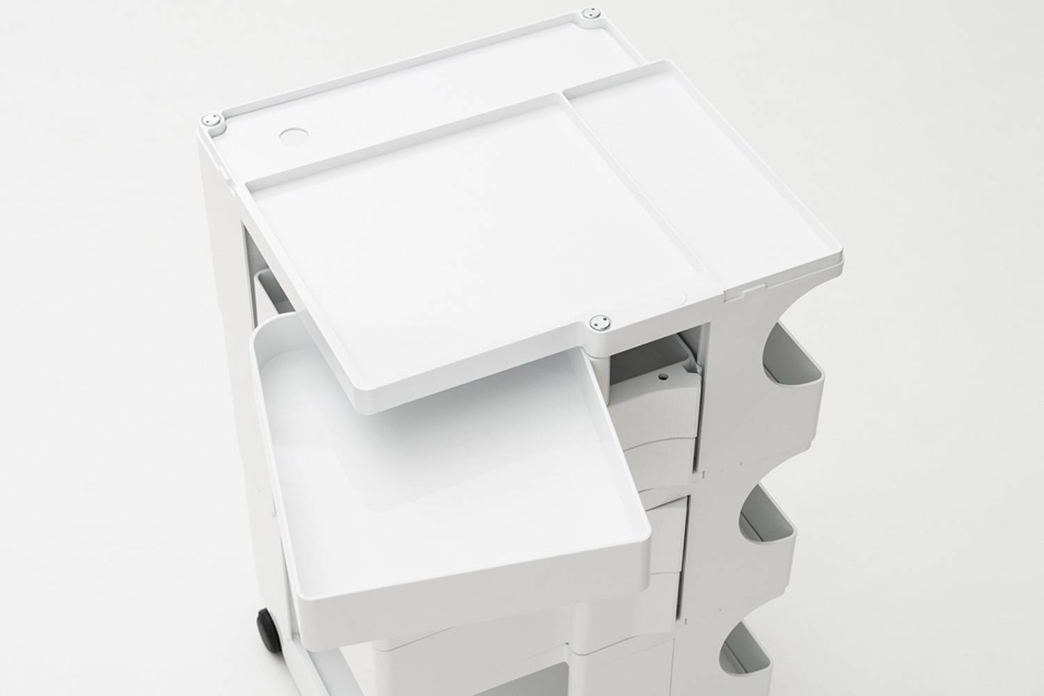BOBY WAGON(ボビーワゴン)は多機能ワゴンの代名詞、MoMAパーマネントコレクションです。 キャスター付きの本体を回転させることで側面4面すべてを効率的に使える、デザイン性と機能性に優れた収納家具です。 180°回転するトレイや、ボトル類の保管に適した奥行きのあるポケットなど、機能性に富んだ収納スペースが随所に工夫されています。ABS樹脂製で汚れの拭き取りも簡単です。 3段タイプは、デスクサイドやキッチンでご使用いただくのに最適。一般的なデスクやテーブルとほぼ同じ高さなので、作業台としてもご使用いただけます。