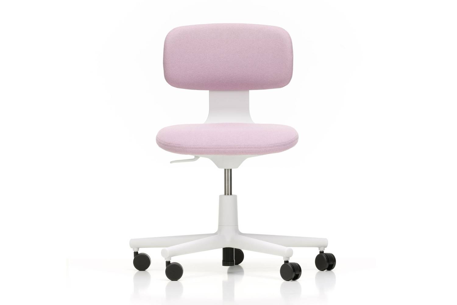 とてもシンプルなデザインで、アームレストもついていないので、あらゆるデスクと合わせることができます。豊富な張地の中からポップなカラーを選べば、お子さんの勉強机にもピッタリです。(スタッフT.T)