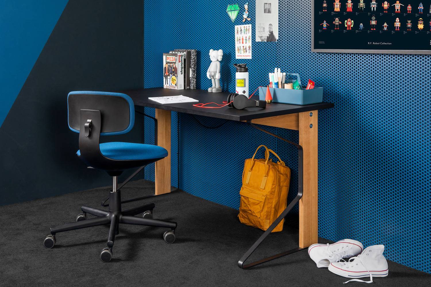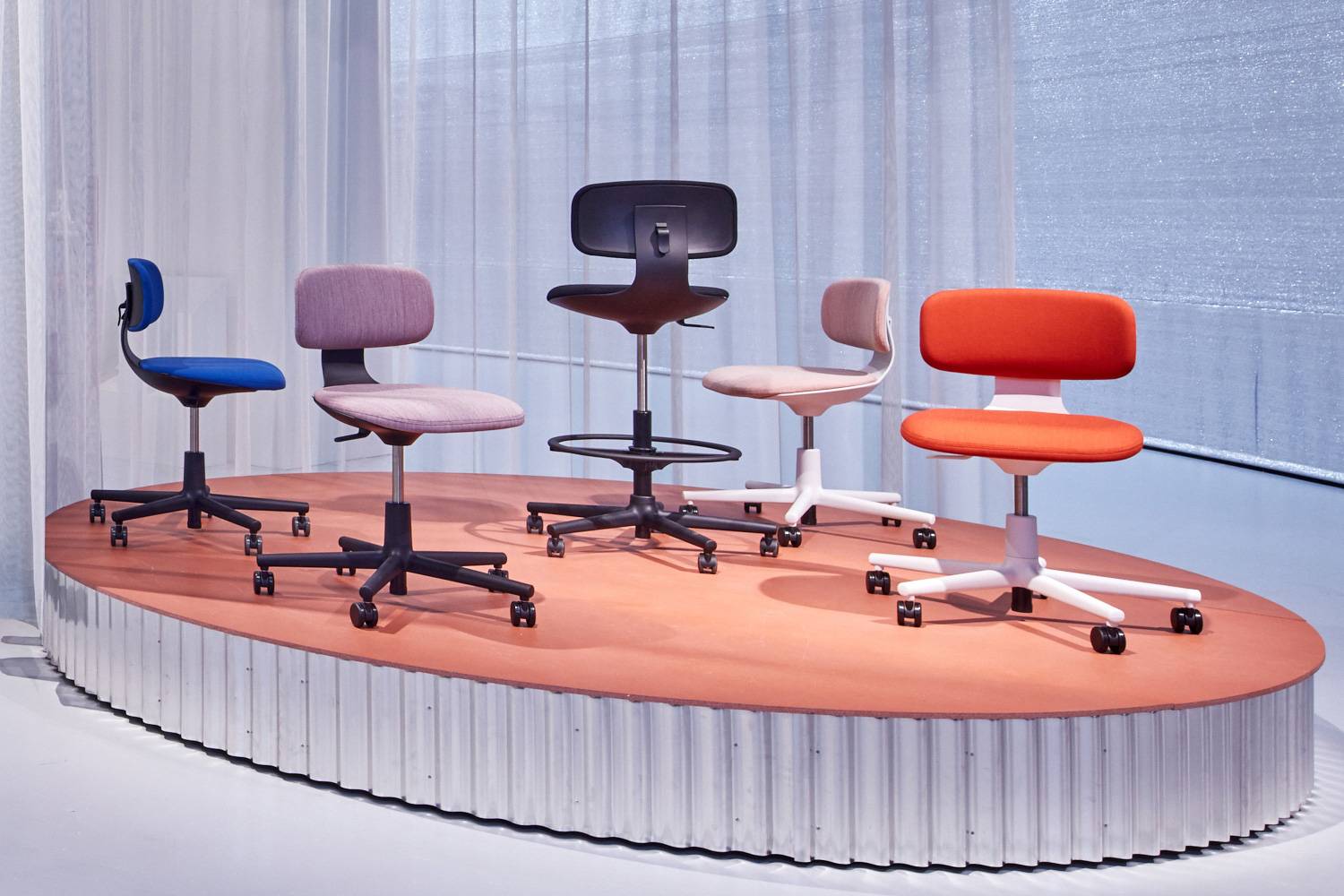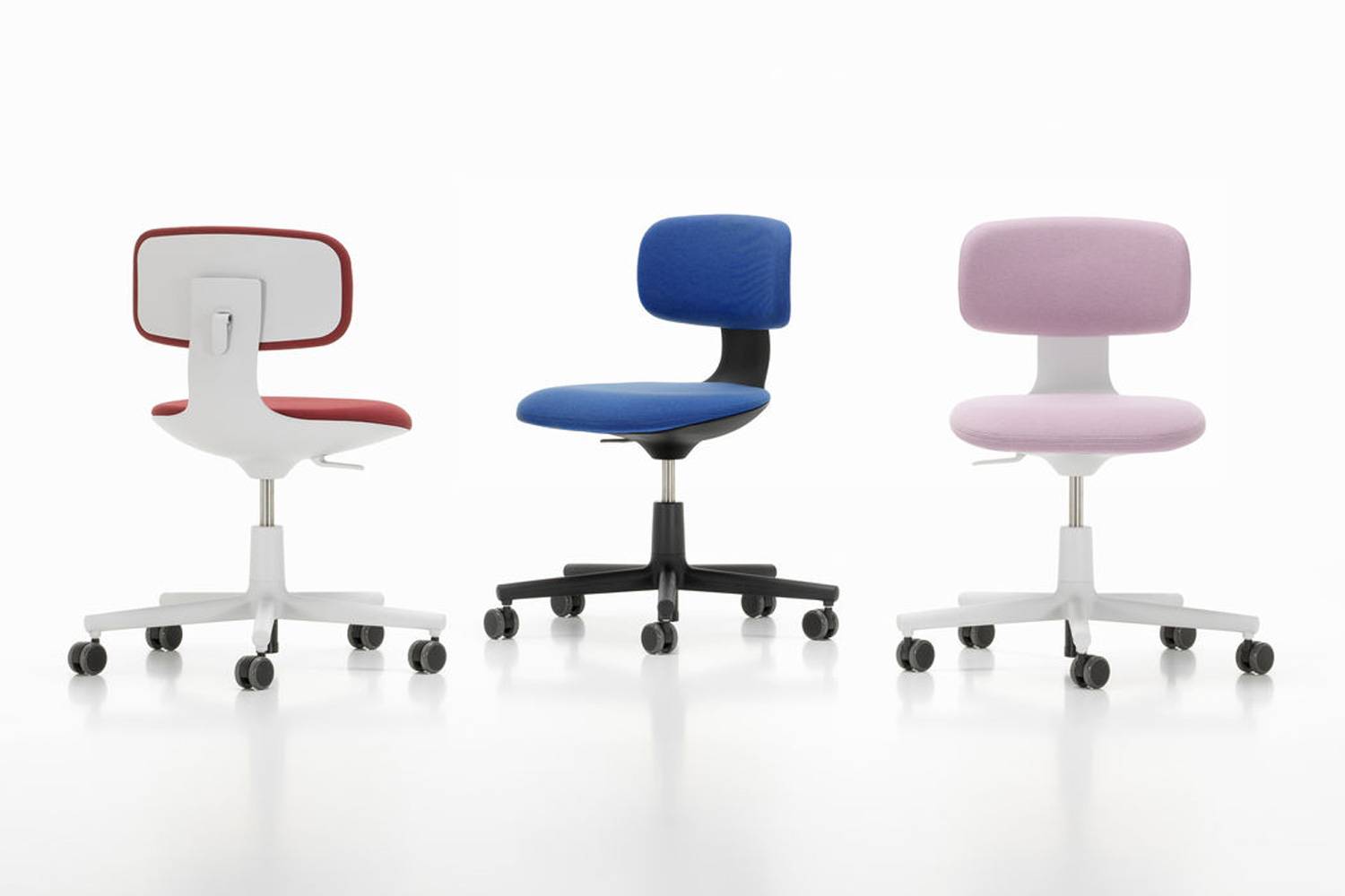ルーキーの素材や張り地とカラーは、Vitra(ヴィトラ)の色と素材のディレクターであるHella Jongerius(ヘラ・ヨンゲリウス)が開発したColour & Material Libraryから選ばれています。 ひとつの統一した価値観に貫かれた色と素材のシステムにより、他製品と合わせて企業のイメージをカラーで表現したり、特別なエリアとして印象づけることも可能です。