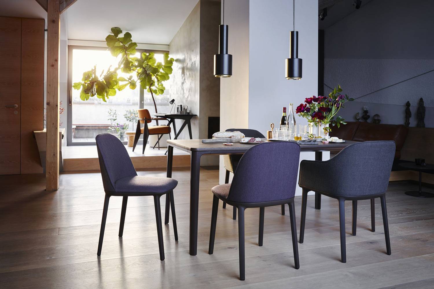 座面から背もたれまでシート全体にクッションが施されたダイニングチェアは意外に少なく、ソフトシェル サイド チェアは、リラックスしてゆっくりとお食事を楽しみたい方に最適なダイニングチェアです。(スタッフT.T)