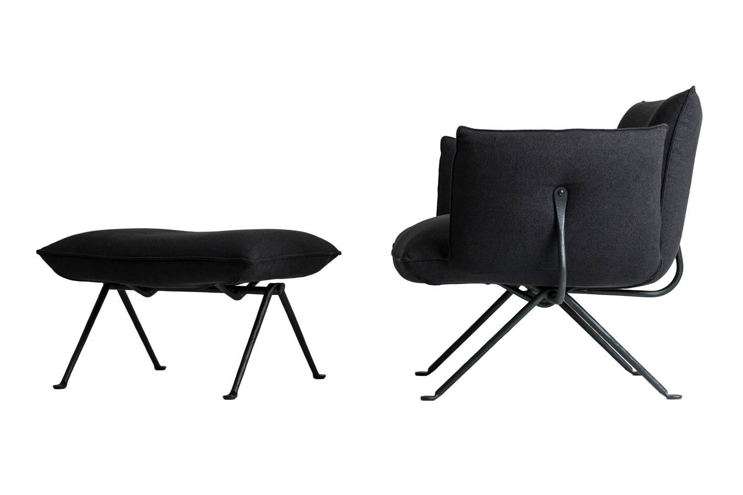 ロナン&エルワン・ブルレック(ブルレック兄弟)のオフィチーナは、鍛造によって成形したフレームを特徴とする新しい家具コレクションです。 鍛造とはハンマーで叩いて鉄を成形する手法で、ヨーロッパでは数十年前まで柵などの建築部材や装飾用の鉄製品の多くがこの技術によってつくられてきました。 ハンマーの跡が残るフレームの質感は、不完全さと同時に洗練された手仕事の美しさを感じさせ、オフィチーナコレクションの最大の魅力となっています。