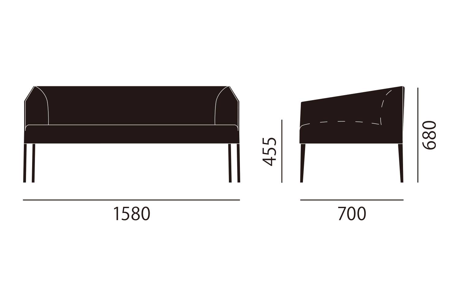 2シーター W158 x D70 x H68cm / SH45.5cm