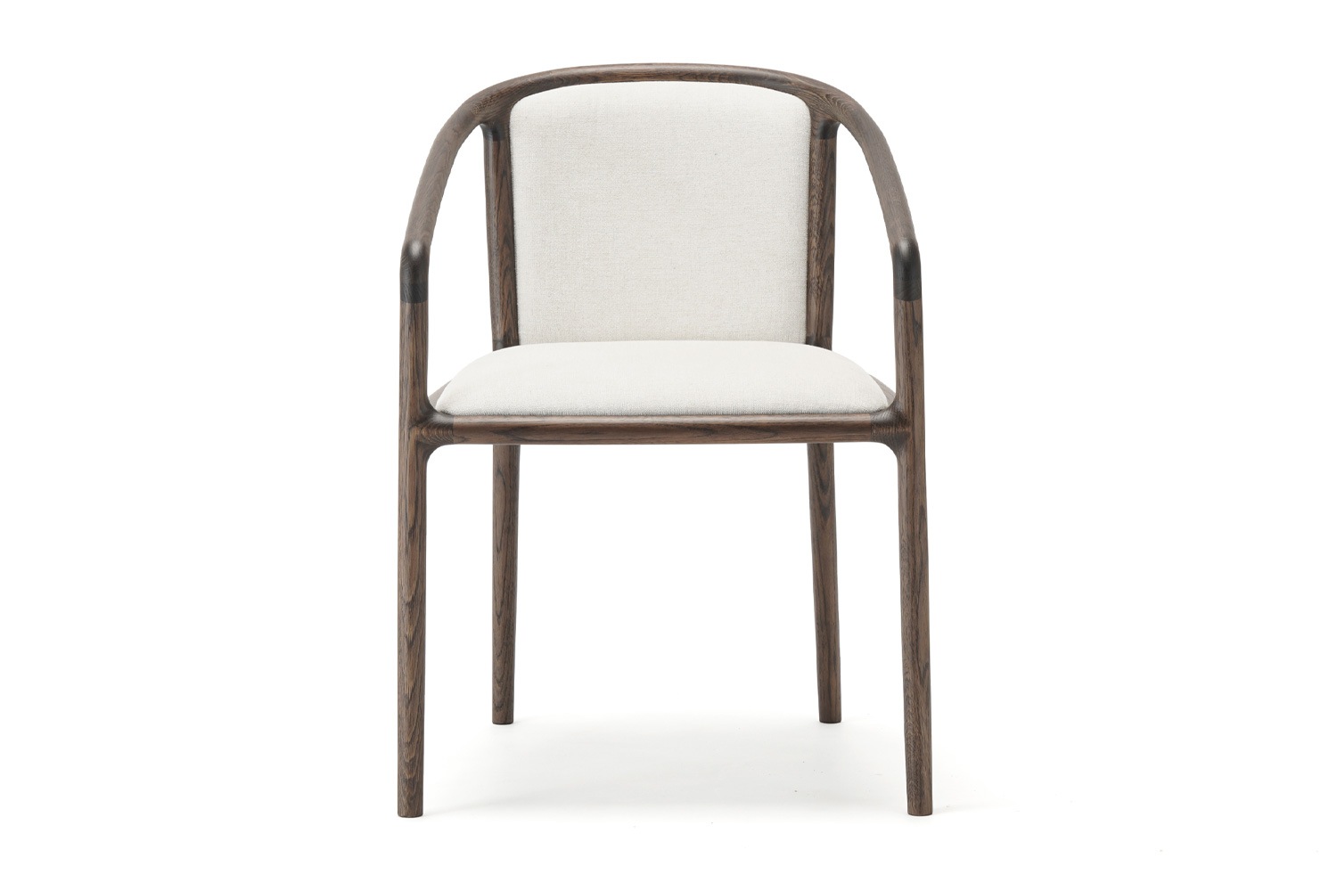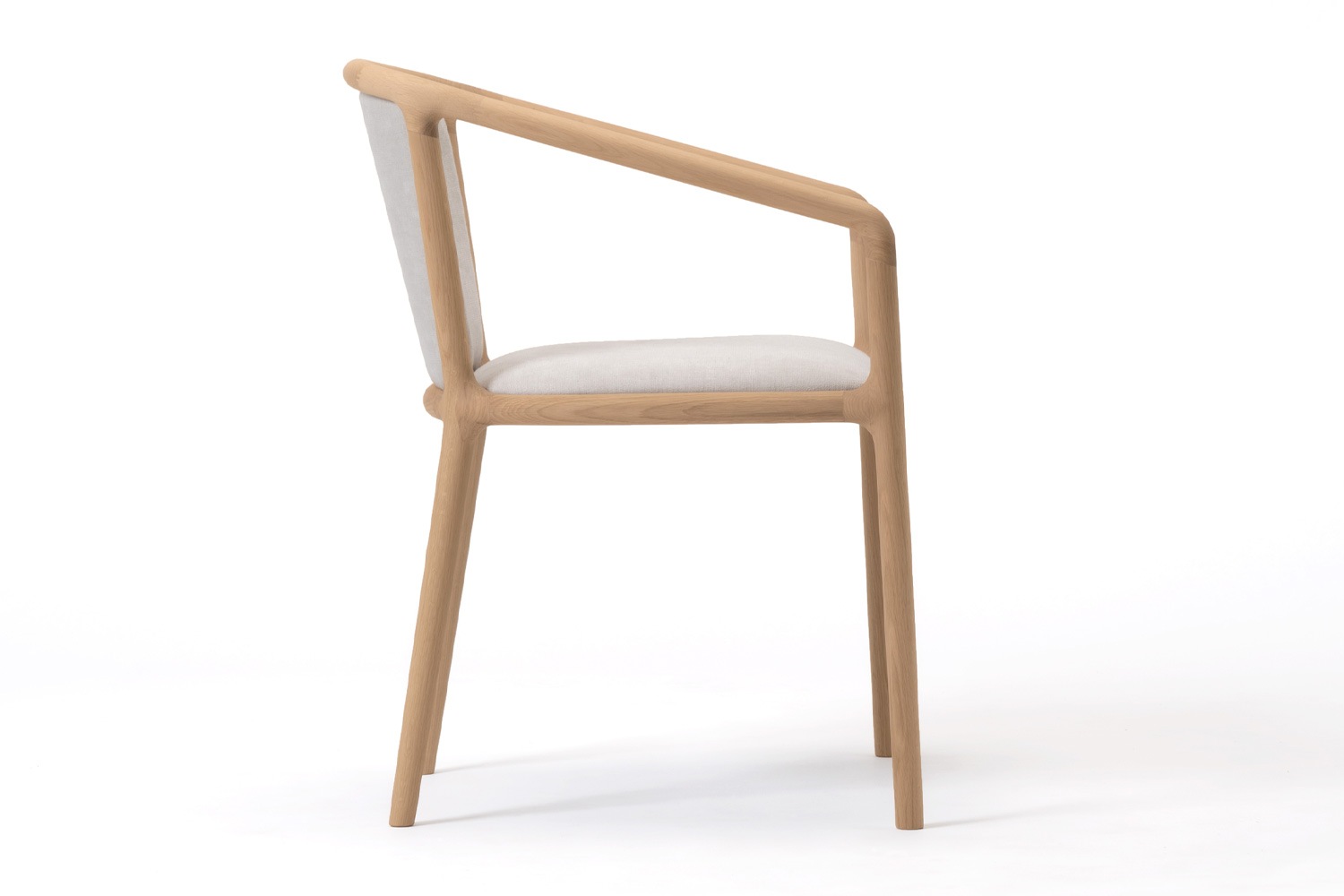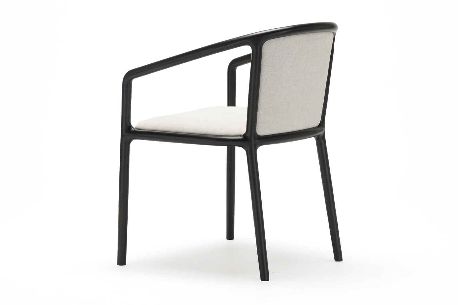 日本を拠点に設立されたライフスタイルブランド KARIMOKU CASE(カリモクケース)の NF-DC01(NF-DC01 ダイニングチェア)は、形状とエルゴノミクス、そしてその間にある絶妙なバランスを追求し続けることによりデザインされたダイニングチェアです。特徴的なフレームと有機的な切り替えが、洗練された、奥行きある複雑な表情をもたらします。スロープ状のアームレストは、NF-DT01ダイニングテーブル の裏面と同じ角度の傾斜を描いており、テーブルの下に美しく収まります。