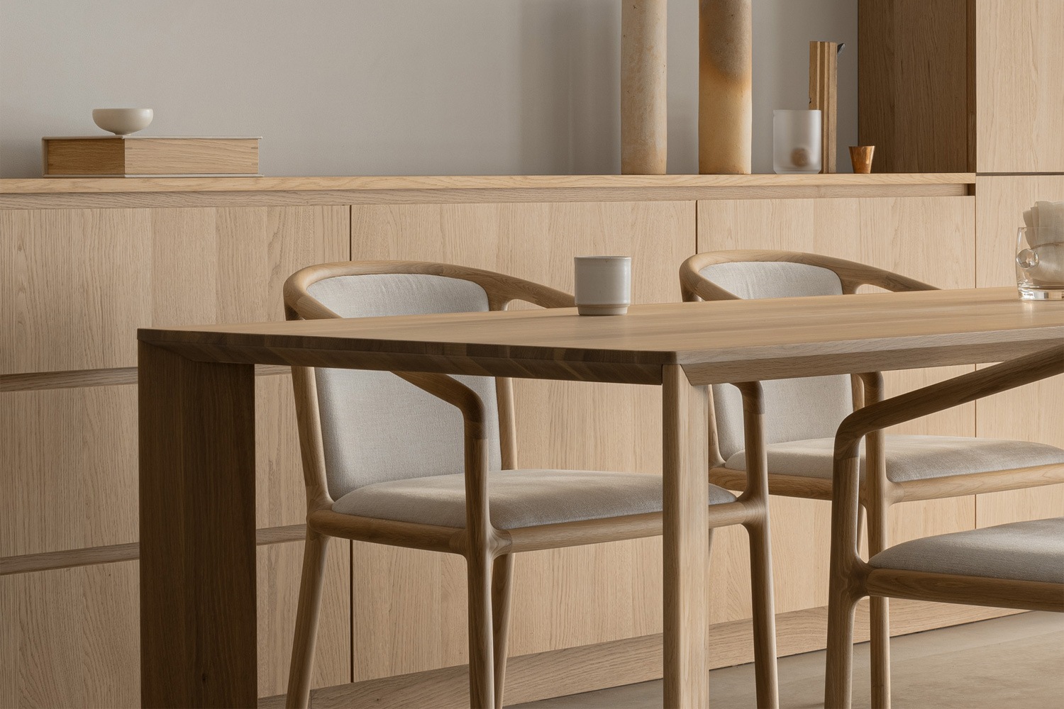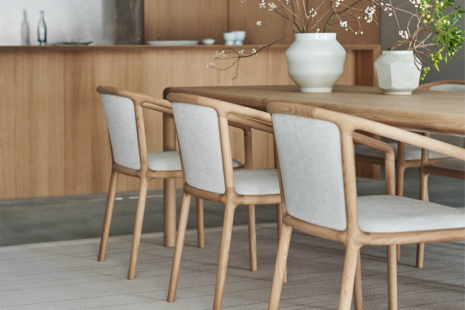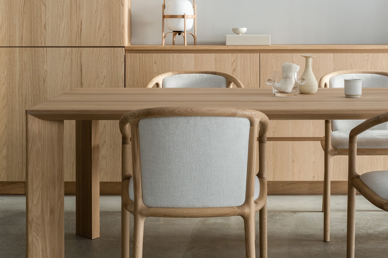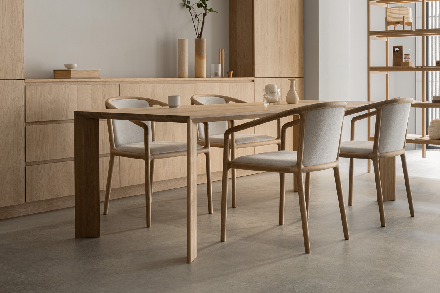 英国を代表する建築家、Norman Foster(ノーマン・フォスター)を迎えた「NFコレクション」は、Norman Foster Foundation(ノーマン・フォスターファンデーション)のプロジェクトチームが設計した「Foster Retreat(フォスター・リトリート)」に備え付けられることを想定しデザインされました。カリモクの最新鋭の木工機械で製作され、職人の手作業により丁寧に仕上げられた、滑らかで有機的なデザインが特徴です。