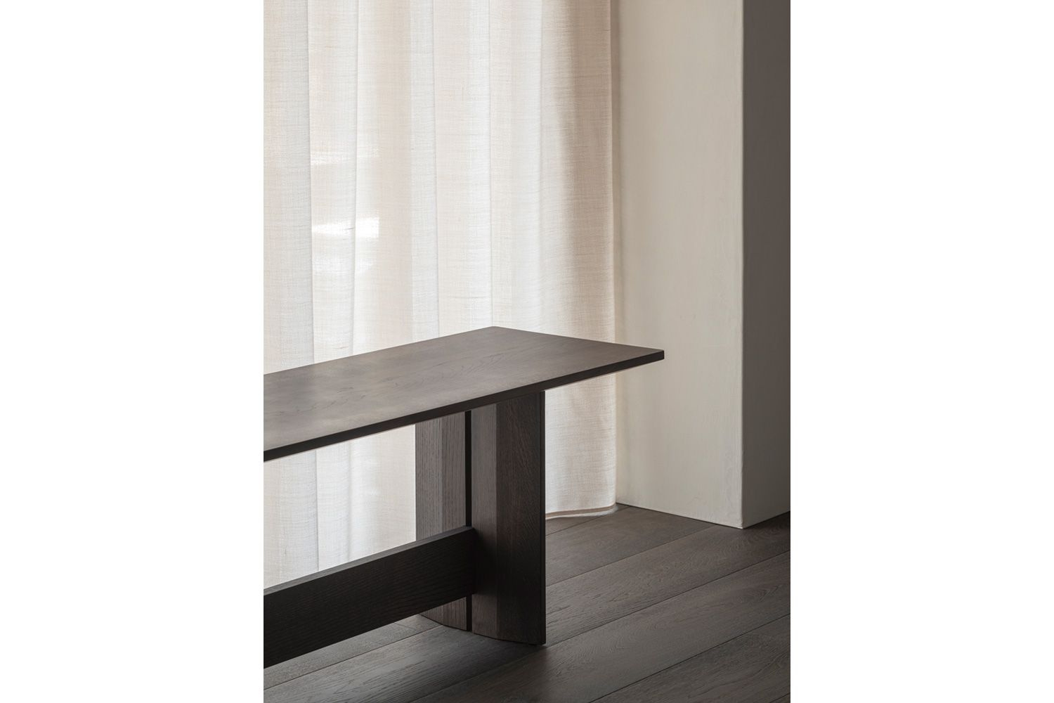 麻布コレクションのA-B01 ベンチは、エントランススペースに設置するために、ベンチとして座れる機能性だけでなく飾り台としても使える形を模索しました。座面と脚のエッジを薄く見せることで生まれる軽やかさと、角材をそのまま使ったような貫材の力強さを繊細なスチールのロッドで接続し全体のハーモニーを作り出しています。 別売で専用クッションもお選びいただけます。