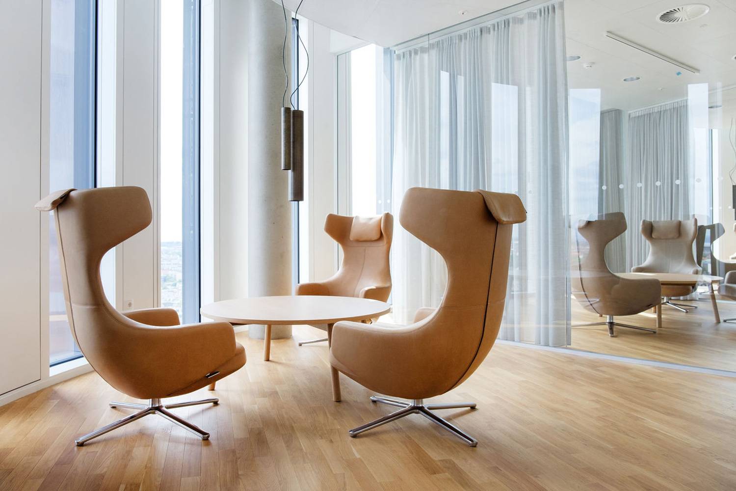 背もたれには、Vitra(ヴィトラ)のワークチェアにも採用されている「シンクロナイズドメカニズム」を搭載。角度は好みに合わせてリクライニング調整・固定ができ、さらに座る人の体重に応じて背圧の強さも変更可能。これにより、体格や姿勢に関係なく、常に理想的なサポートが得られます。また、ヘッドレスト部分には緩やかな目隠しが設けられており、視線を遮ってくれることでプライベートな空間を演出。読書やリラックス、映画鑑賞など“ひとり時間”に最適な仕様です。 快適性と美しさ、そして機能性を高次元で融合させた、“ラウンジチェアの決定版”です。
