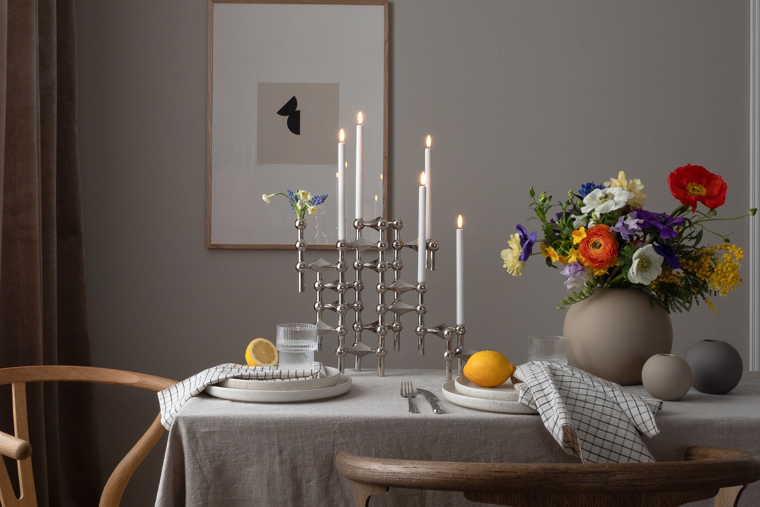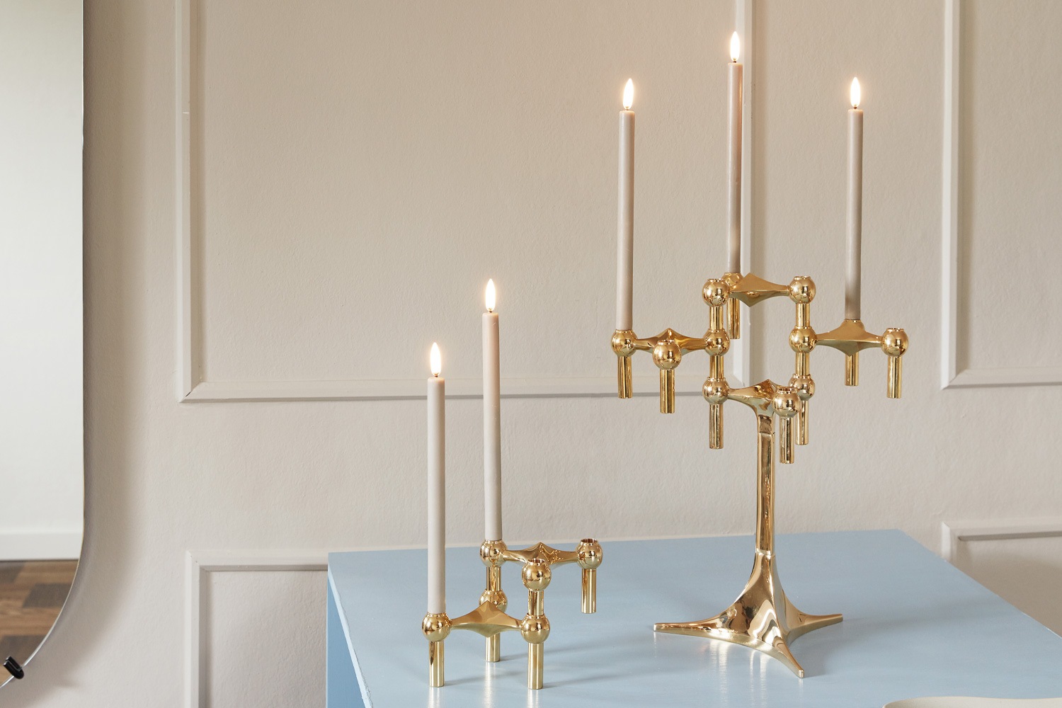 1960年代にドイツの建築家Werner Stoff(ヴェルナー・シュトフ)が、友人のHans Nagel(ハンス・ナーゲル)のためにデザインしたキャンドルホルダーが、2015 年にデンマークのデザイン会社によって、STOFF Nagel(ストッフ ナゲル)のブランド名で復刻されました。この古典的な作品はWerner Stoff(ヴェルナー・シュトフ)のオリジナルの図面を使用して発表され、それ以来 1960 年代のデザインが数多く復活しました。機能的なデザインはスカンジナビアのミニマリズムに触れ、スタッキング可能なアプローチにより、無限のモジュールを組み合わせて個々の彫刻を作ることができます。
