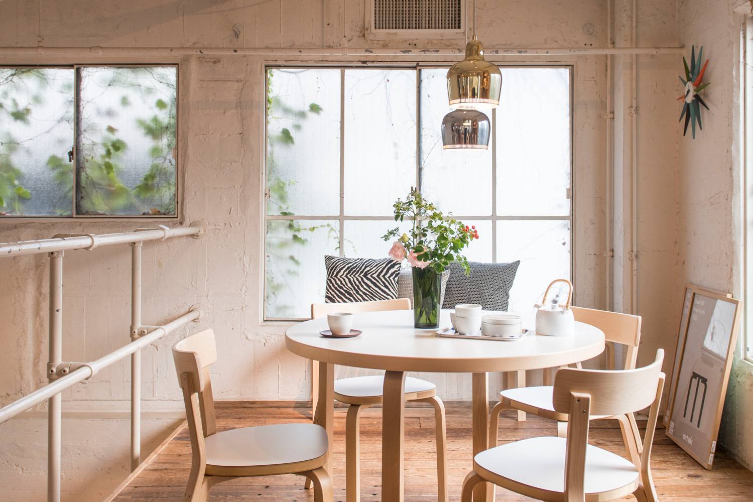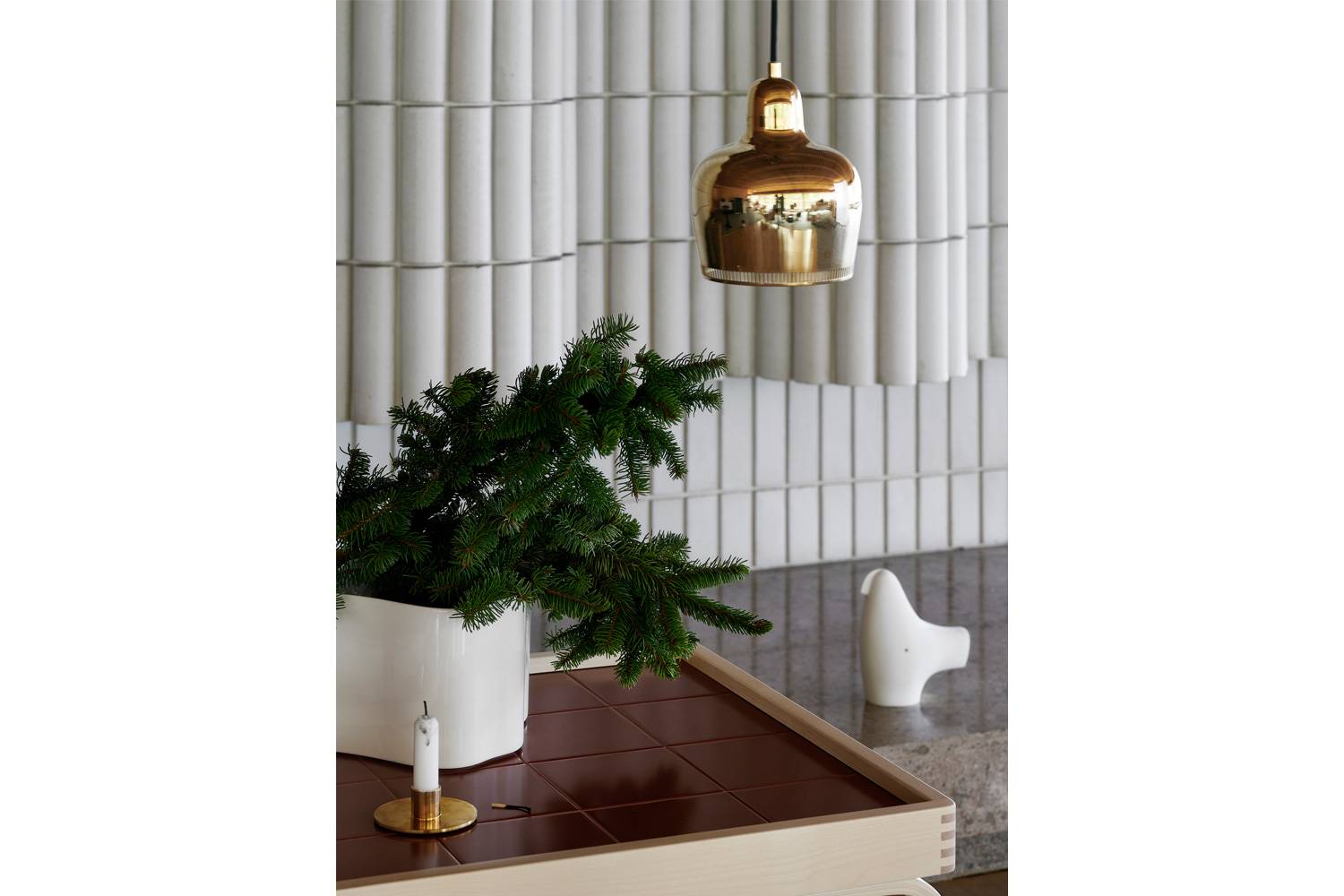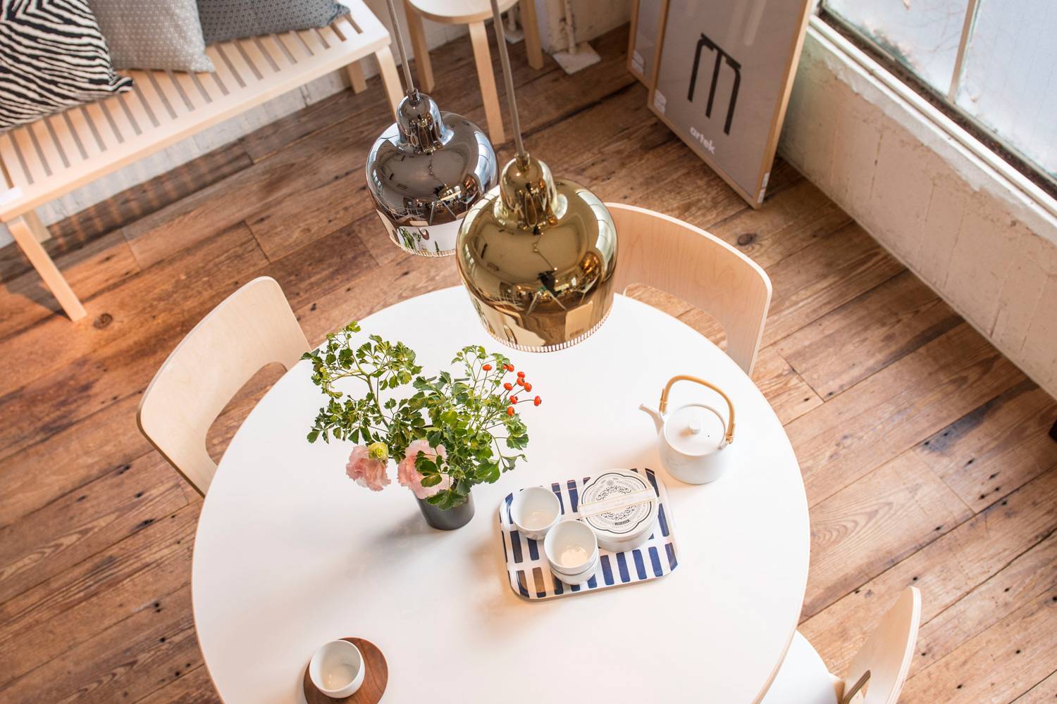 1936年に考案され、翌年、パリ万博のフィンランドパビリオンで発表されたは、ヘルシンキにあるサヴォイレストランの内装に現在でも使われています。 機能的な構造から放たれる温かく柔らかな光とフォルムの美しさは、まさにアルヴァ・アアルトの哲学を体現した姿といえます。