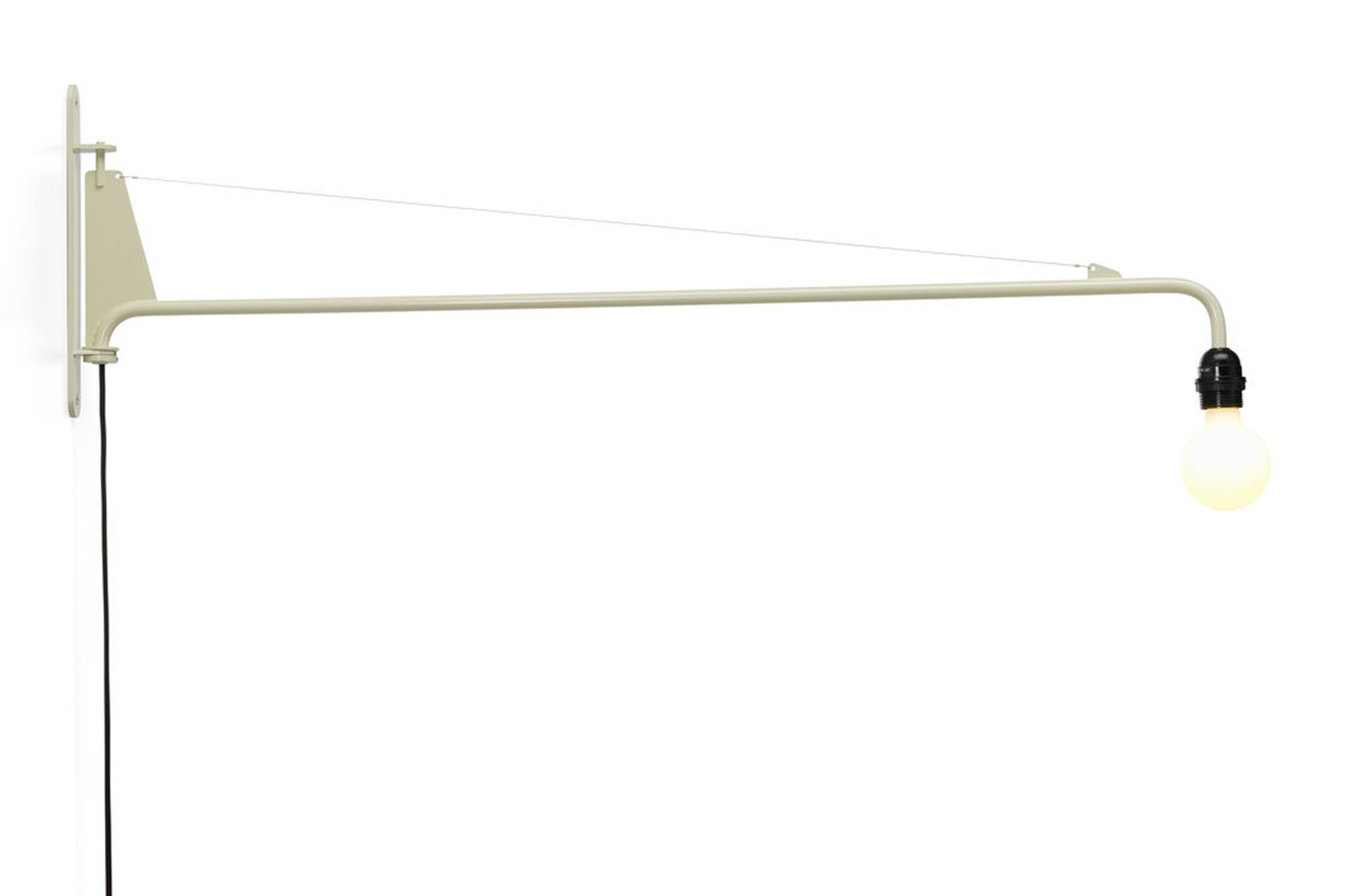 1940年代後半、ジャン・プルーヴェはナンシーにある自宅のために、ウォールランプ、ポテンスの最初の試作品を作りました。それは、スイング式スチール製アームの先端に電球を取り付けただけの極めてシンプルなデザインでした。 ジャン・プルーヴェの機能主義的な哲学を表現した簡潔で潔いデザインのウォールランプは、その後、スイングを滑らかにするためにハンドルを追加した大きなモデルなど、さまざまなサイズで生産されました。