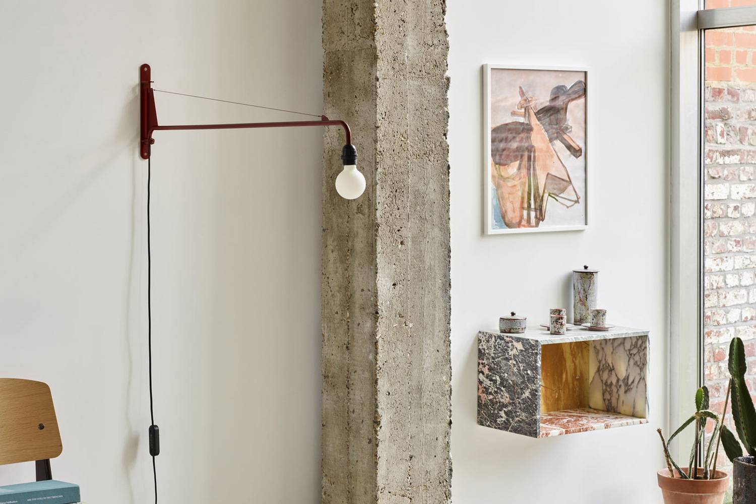現代の居住空間に合わせて、ポテンスのデザインをコンパクトに展開した、103cmのスイング式アームのプチ ポテンスは、ジャン・プルーヴェが使用していたオリジナルの色合いにヒントを得たジャパニーズレッド、ディープブラックの2色で展開します。 プチポテンスは、コンパクトながら時を越えた美しいデザインで、ダイニングやリビングルーム、オフィスからカフェまであらゆる環境におすすめできる照明です。