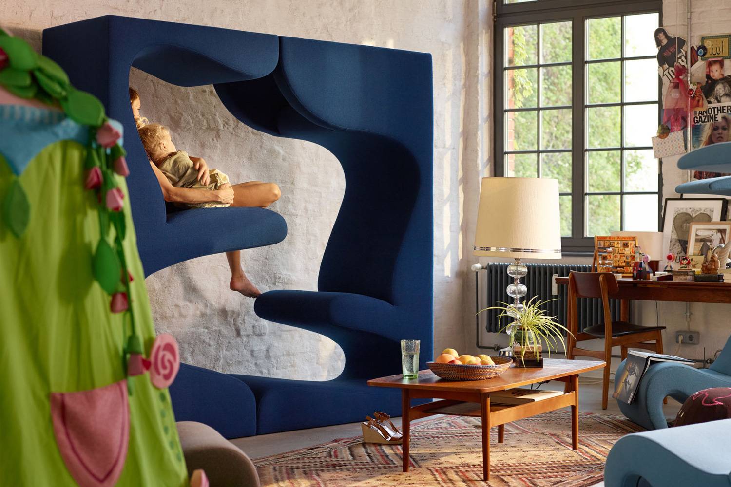 ヴァーナー・パントンによってデザインされた有機的なフォルムのリビング タワーは、まるで彫刻のような家具です。 そのフレームにはバーチ材使用し、2メートルを超える高さでも非常に安定しています。
