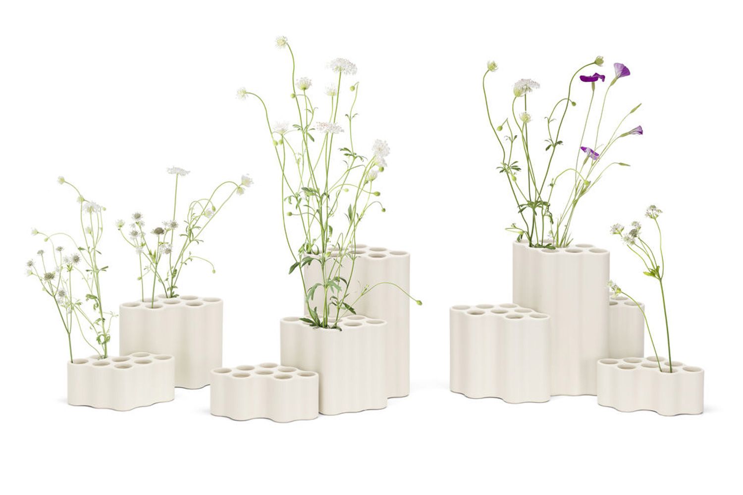 ロナン & エルワン・ブルレック(ブルレック兄弟)によるデザインのフラワーベース。 流れる雲を思わせるなだらかな形状のフラワーベース。様々な草花をミックスしたり、同じ種類の草花をボリューム出したり、複数の丸穴があることで、いろいろな表情をみせてくれます。