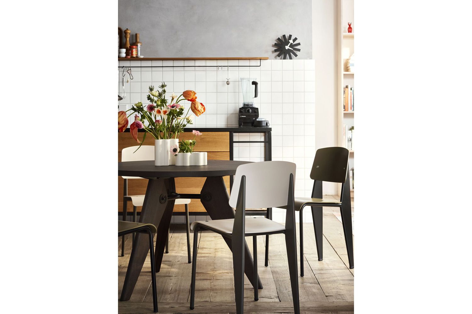 Vitra(ヴィトラ)は店舗什器を製造していたウィリー・フェルバウムによって1950年に創設されたスイスの家具メーカーです。ヴィトラは人間工学に基づいた家具作りを研究し、その確かな技術はオフィス家具のみならず、ホームユース家具やインテリアアクセサリーにも反映されています。ジョージ・ネルソンの「ウォール クロック」やジャン・プルーヴェ「スタンダード」、イサム・ノグチ「コーヒー テーブル」などの名作を復刻し、またジャスパー・モリソンやロナン&エルワン・ブルレックなど、現代のデザイナーたちによる最新家具を揃えています。