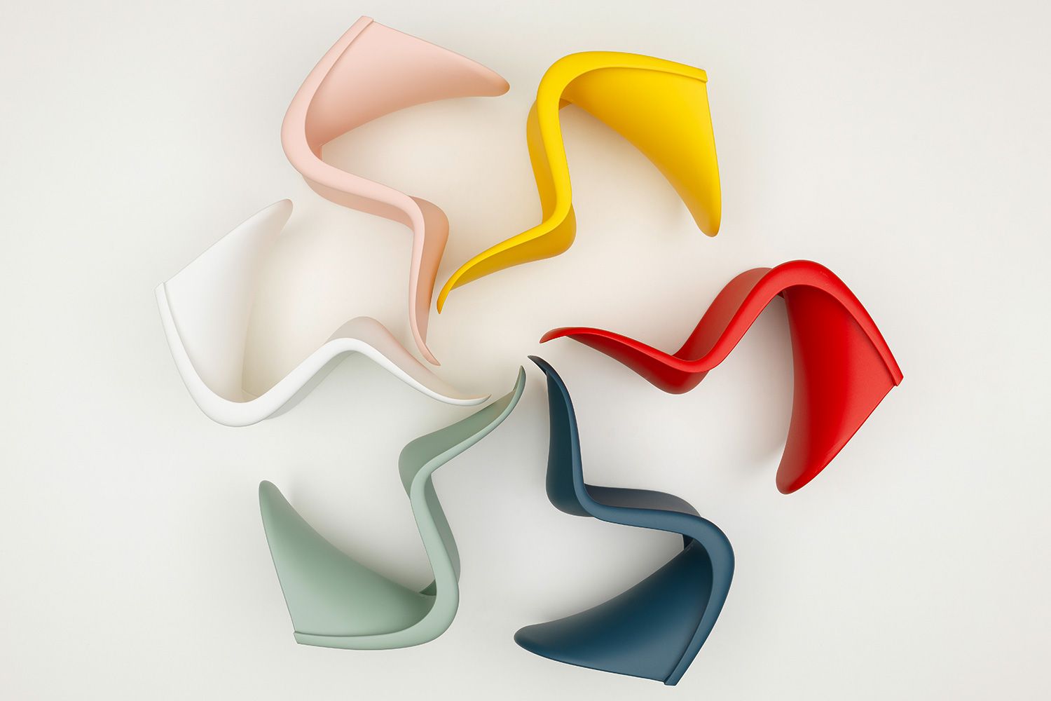デンマークのデザイナー、Verner Panton(ヴァーナー・パントン)は1926年に生まれ、コペンハーゲンの王立美術アカデミーで建築を学びながら、アルネ・ヤコブセン建築事務所で働きました。ヴァーナー・パントンは、戦後のアメリカやイタリアでみられるような新素材に注目し、S字曲線を特徴とするプラスチック一体成型の椅子「パントンチェア」を生み出しました。デンマーク人でありながら北欧のぬくもりある木製家具との関係を断ったミッドセンチュリーを代表するデザイナーの一人です。