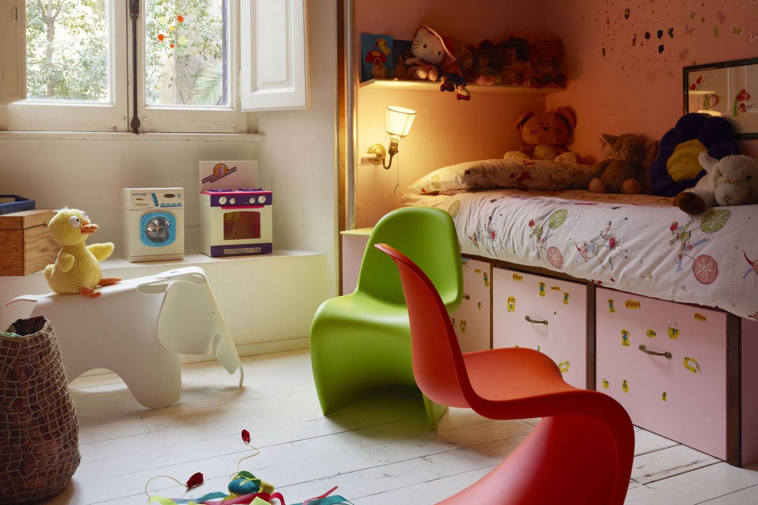 パントン チェアは、デンマーク出身のヴァーナー・パントンのデザインを象徴する鮮やかな色と、彫刻を思わせる斬新なデザインは、デザイン界に大きな衝撃をもたらしました。 国際的なデザイン賞を多数受賞し、世界中の著名な美術館のコレクションとして所蔵されるなど、20世紀デザインの象徴ともいえる一脚です。 パントンチェアの素材や形状はそのままに、サイズを約25%縮小したパントン ジュニアは、 子供用のチェアとして最適です。