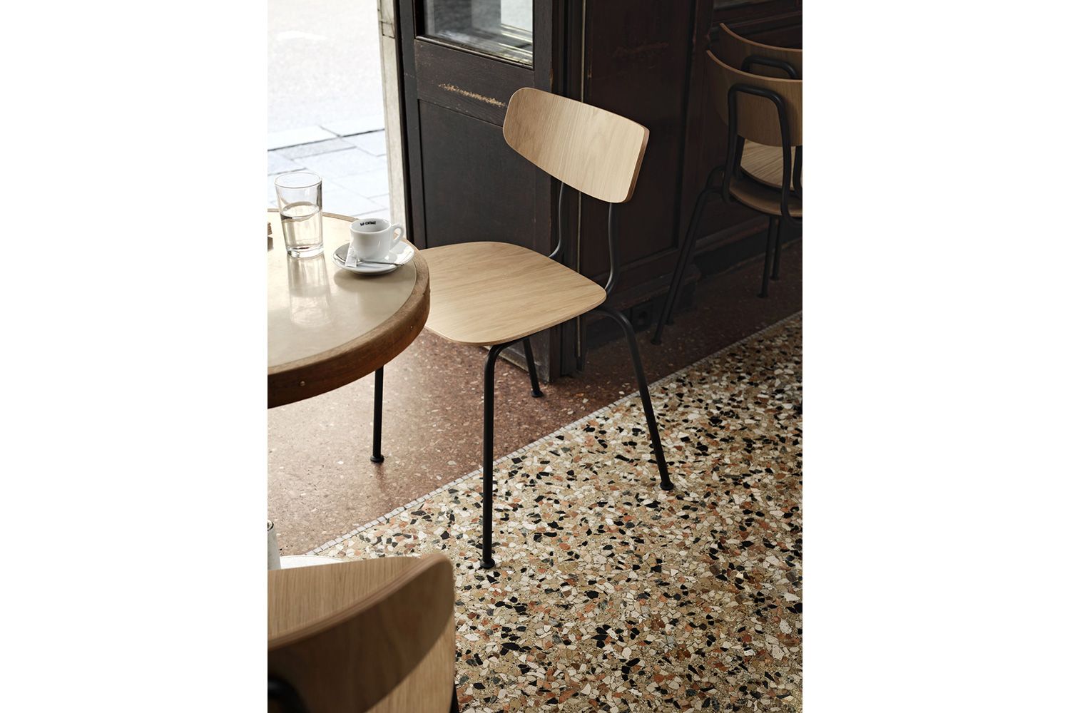 2本のスチールチューブがモカの基本構造です。1本は背もたれを支えながら前脚となり、もう1本は後脚として働きます。 快適性を考慮して成形されたプライウッドが座面と背もたれとして取り付けられ、スタッキングした際に表面を傷つけないよう、裏にはスタッキングプロテクターを備えています。(6脚までスタッキング可能) デザイン、機能性、耐久性まですべての面において高い基準を満たすモカは、個人の住まいだけでなくレストランやカフェなどの公共スペースで使用することができます。