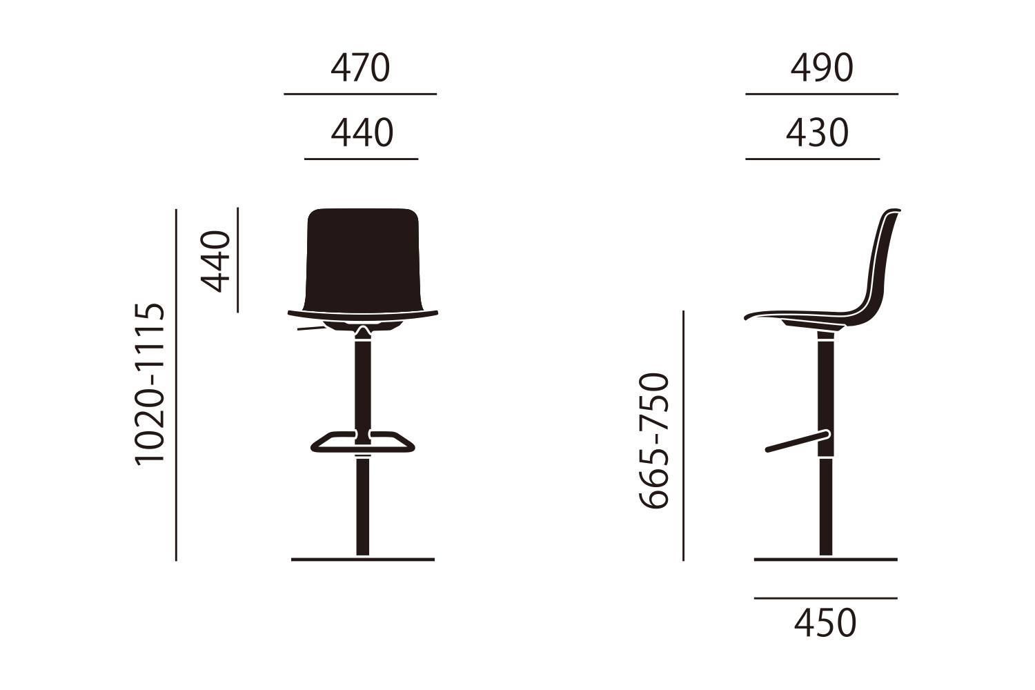 幅47 × 奥行49 × 高さ102-111.5cm / 座面の高さ65.5-75cm